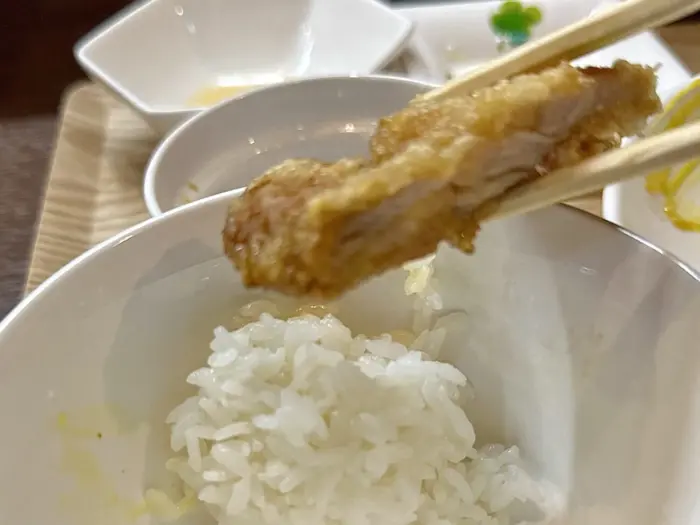 タレじょぶじょぶにつけた油淋鶏なんてご飯の上に乗せてナンボでしょー、そんな教育受けた世代だもんやっちゃうもんn