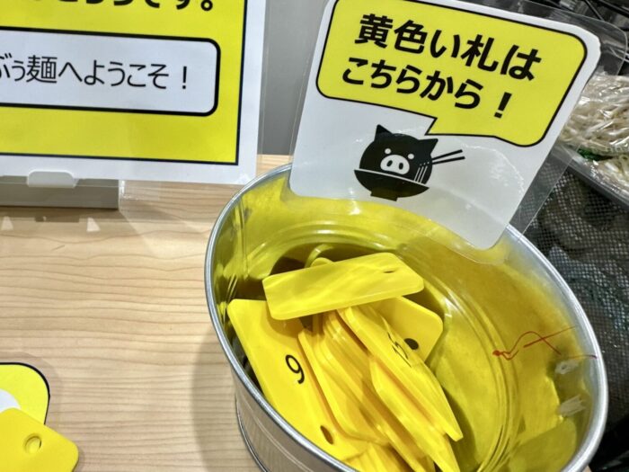 ①食券買う→②食券受付にて黄色い札を一個とる→③札に書かれた番号を備え付けの赤ペンで食券に書く→④食券渡して番号札持ってお好きな席へ→⑤札の番号呼ばれたら取りに行く→⑥喰う→⑦喰い終わったらキレイキレイ→⑧返却口に返す→⑨プッガい息して笑顔のゴチソーサマ、っていう。