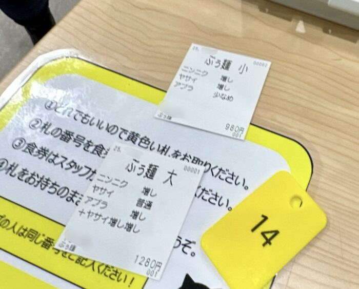 そんな透け透け系オヤンズハイボールマン、オーダーは「ぶぅ麺大アブラマシニンニクマシヤサイマシマシ ¥1,280」