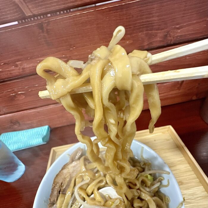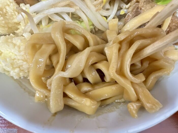 しかしこの極太麺がほんとに美味い、やがて始まるだろう麺増量オプションもこれは楽しみ