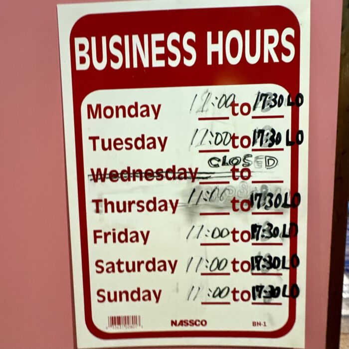 さらにちなみに、最新の営業時間は以上のとおり、見るものによっては12時オープンだったり19:30閉店だったりだからもうここスクショしちゃえ(´⊙◞⊱◟⊙`)