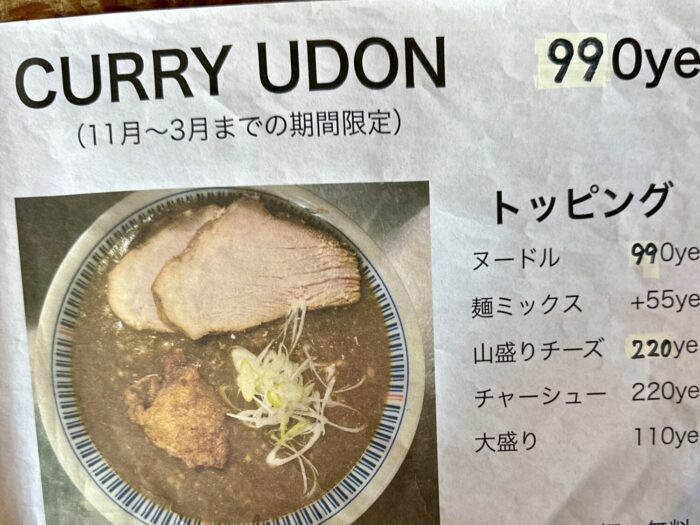 そんな泥棒理論に生きるハイボールマン、オーダーしたのはもちろん11月〜3月までの期間限定「CURRY UDON(山盛りチーズ) ¥1,210」