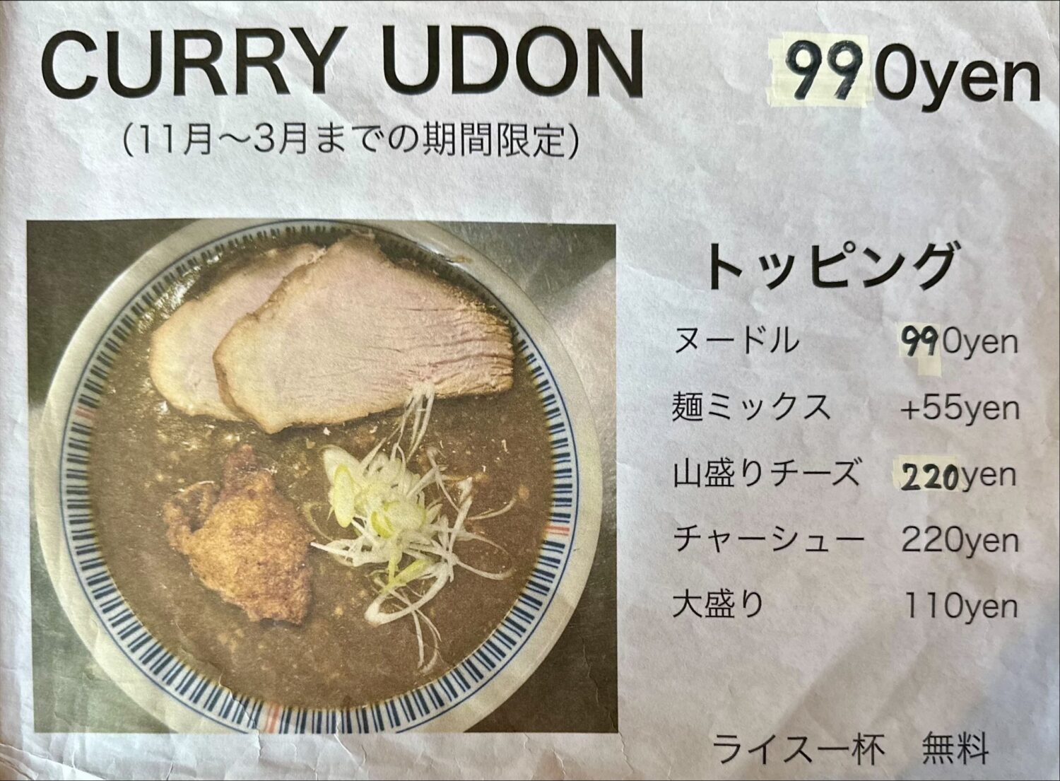 理由はもちろんアレ、雪のこの時期にやってくるあの期間限定【CURRY UDON(山盛りチーズ)】税込1,210円。