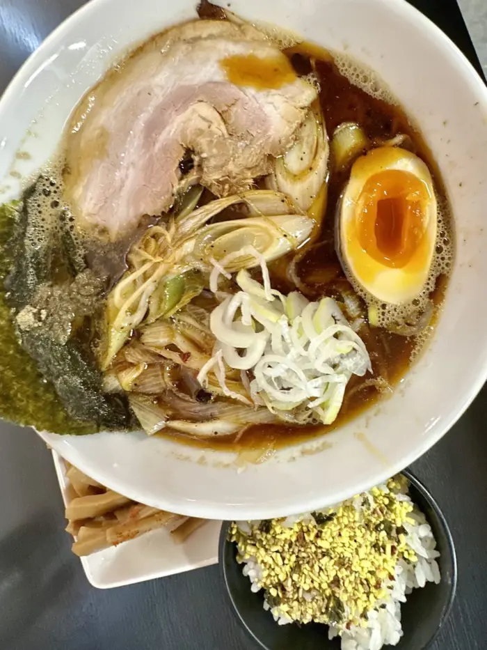 珠玉の煮干しスープに辛炒めネギをどさっと乗せて、ラー油な辛味で味整えた一杯は、旨辛の辛旨。