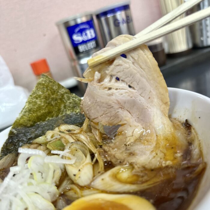 チャーシューは見事なまでにホロットロ、ガサツな箸使いなら即崩壊の高難易度ニグ