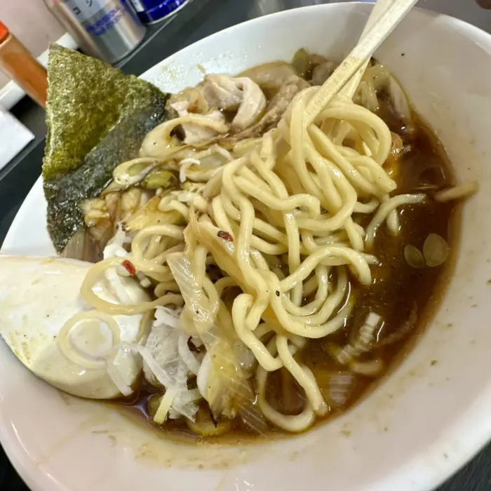 とくに低加水なモゾゾ中太ストレート麺、この調和した美味さってもう驚嘆の域。