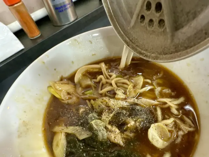 食券渡したらコップ持ってお爺さんは水汲みに、、ってあっ、アレはッッ!?:(;゙゚’ω゚’):
