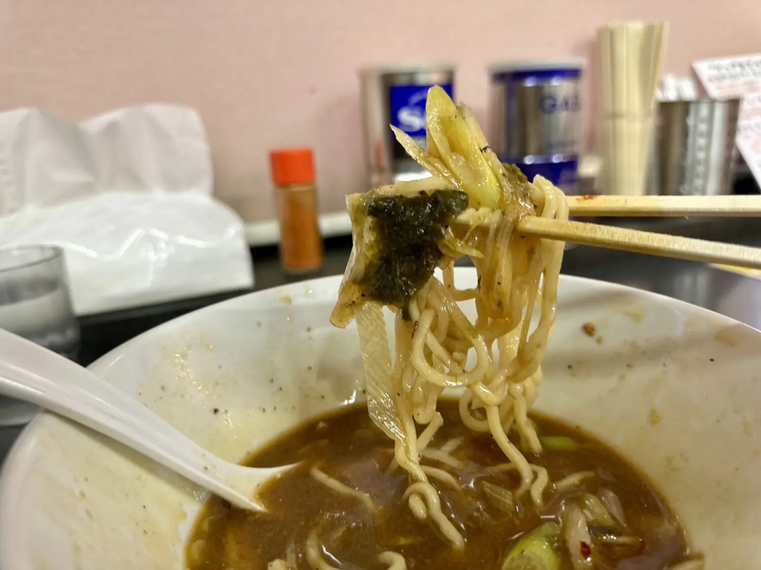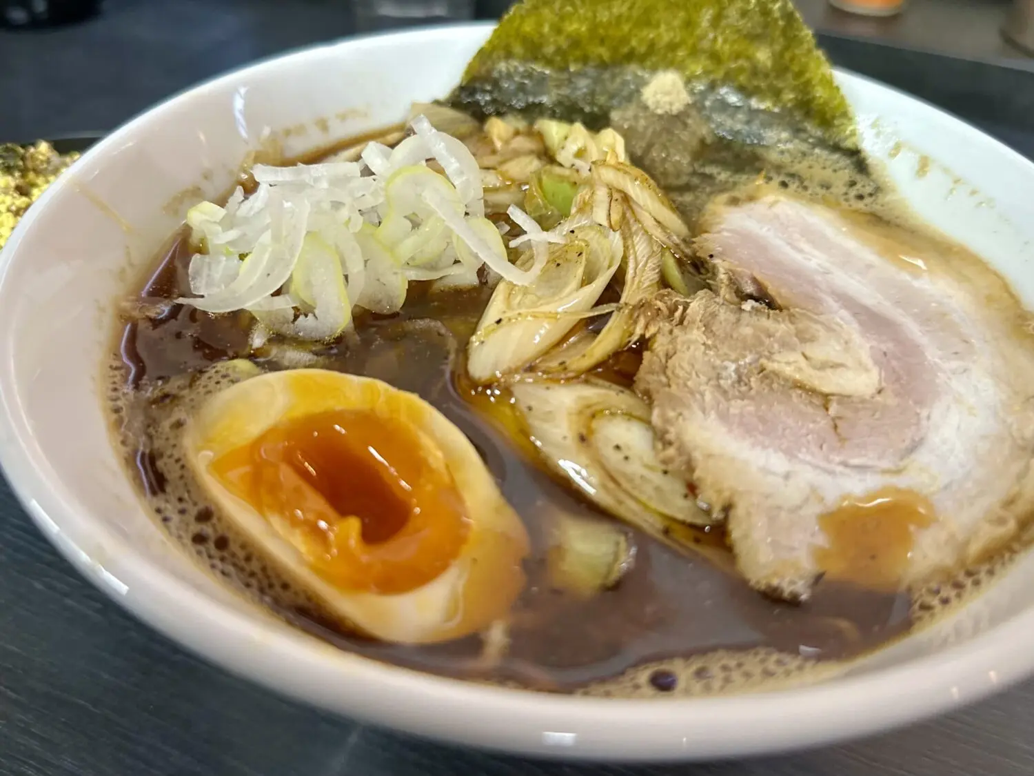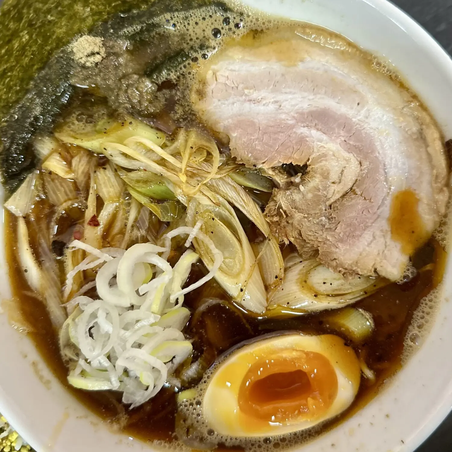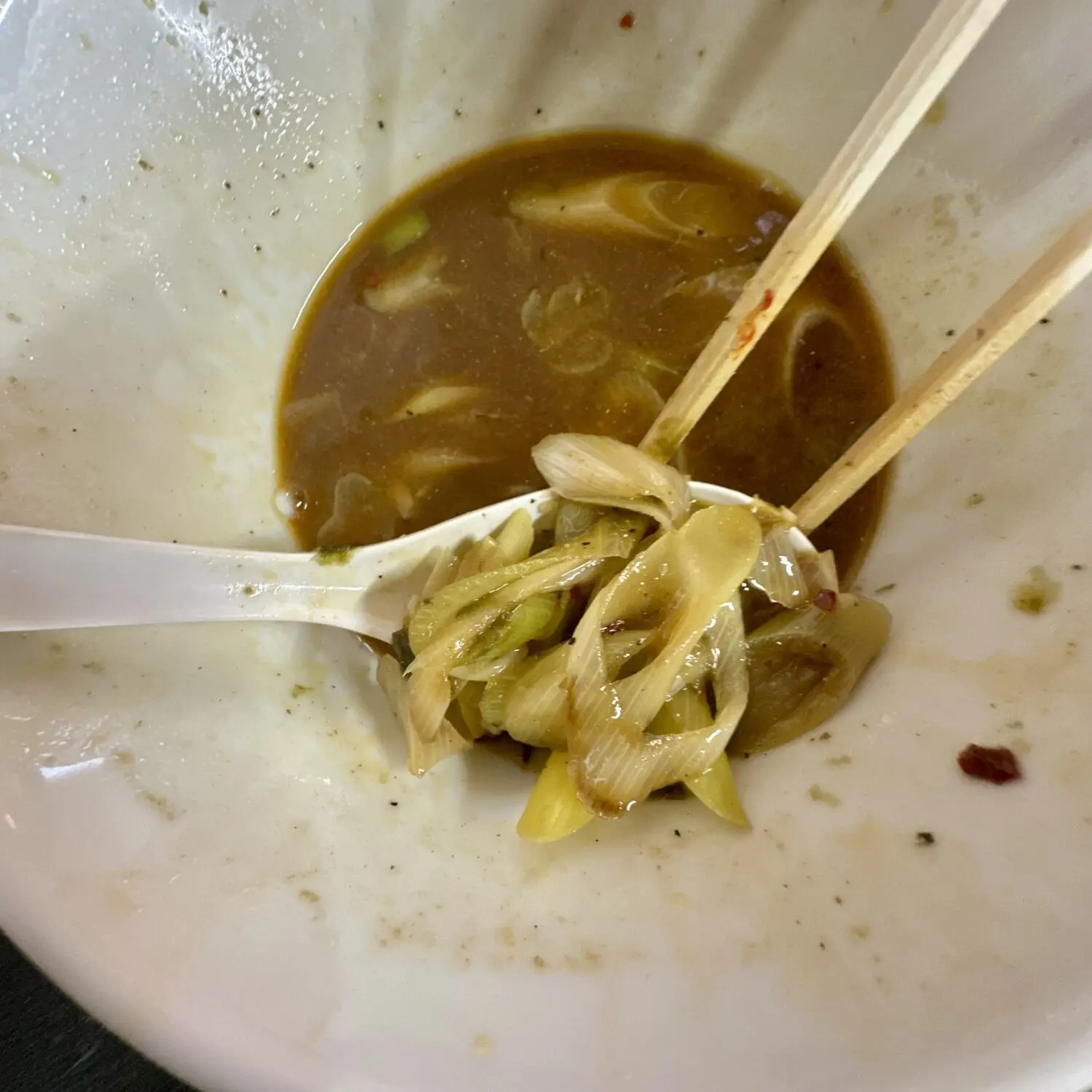 珠玉の煮干しスープに辛炒めネギをどさっと乗せて、ラー油な辛味で味整えた一杯は、旨辛の辛旨。