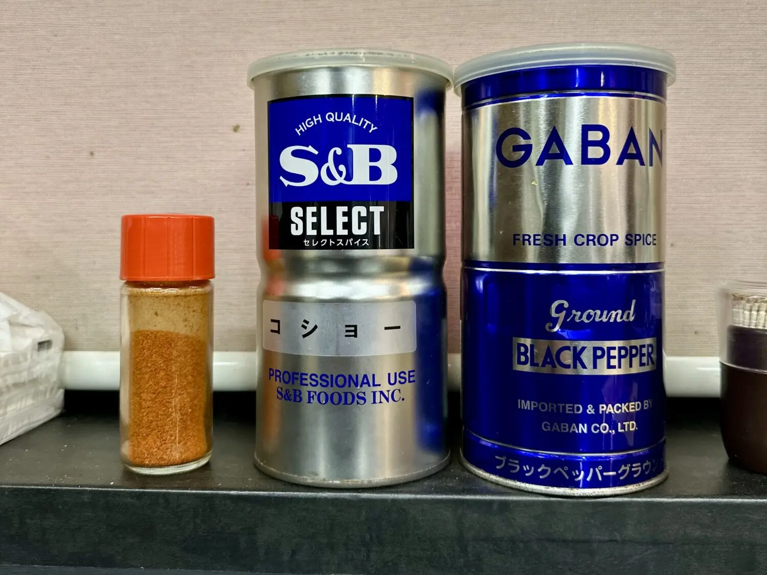 ちなみに卓上調味料は赤・白・黒の基本の3色に加え、