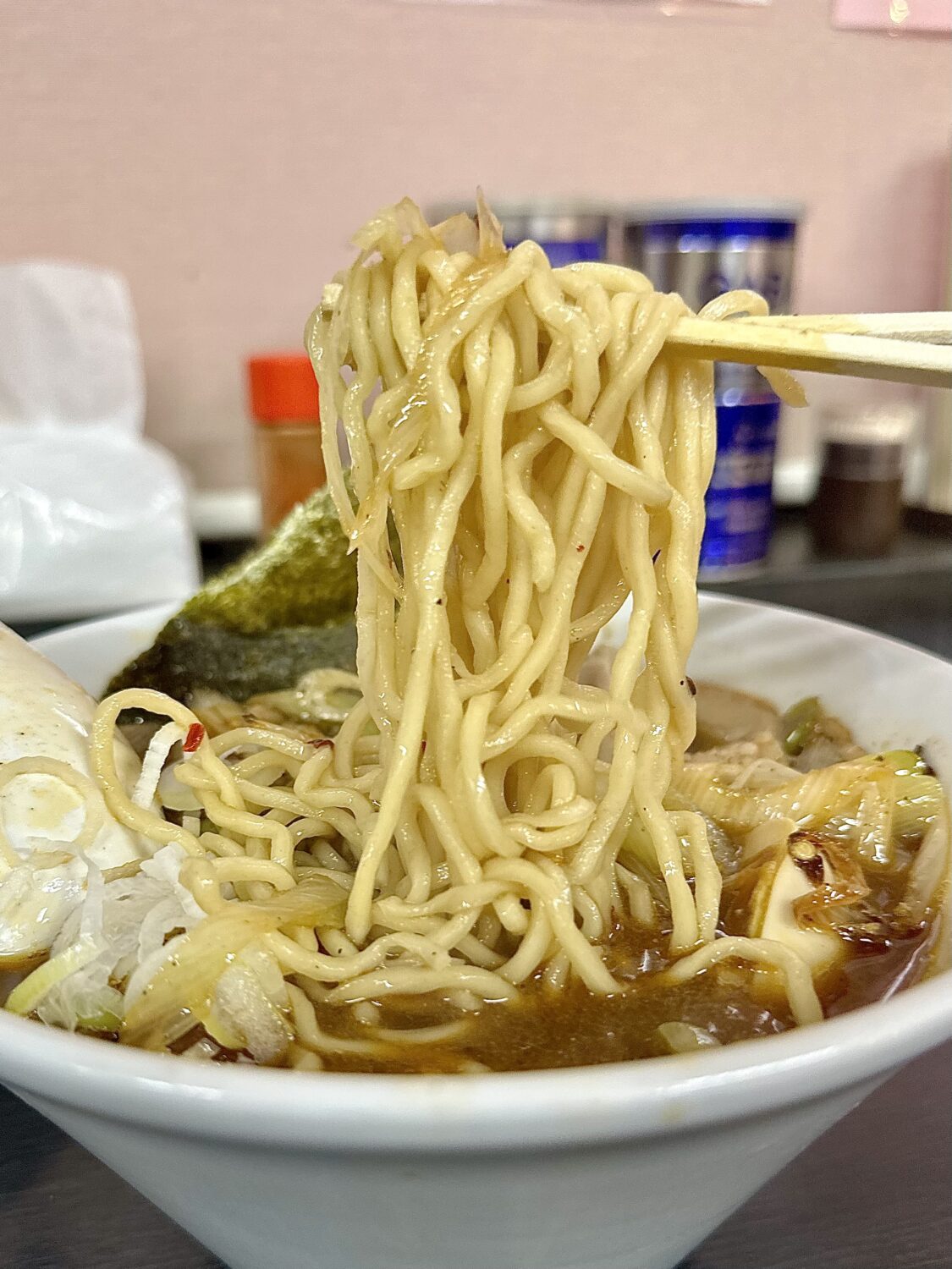 とくに低加水なモゾゾ中太ストレート麺、この調和した美味さってもう驚嘆の域。