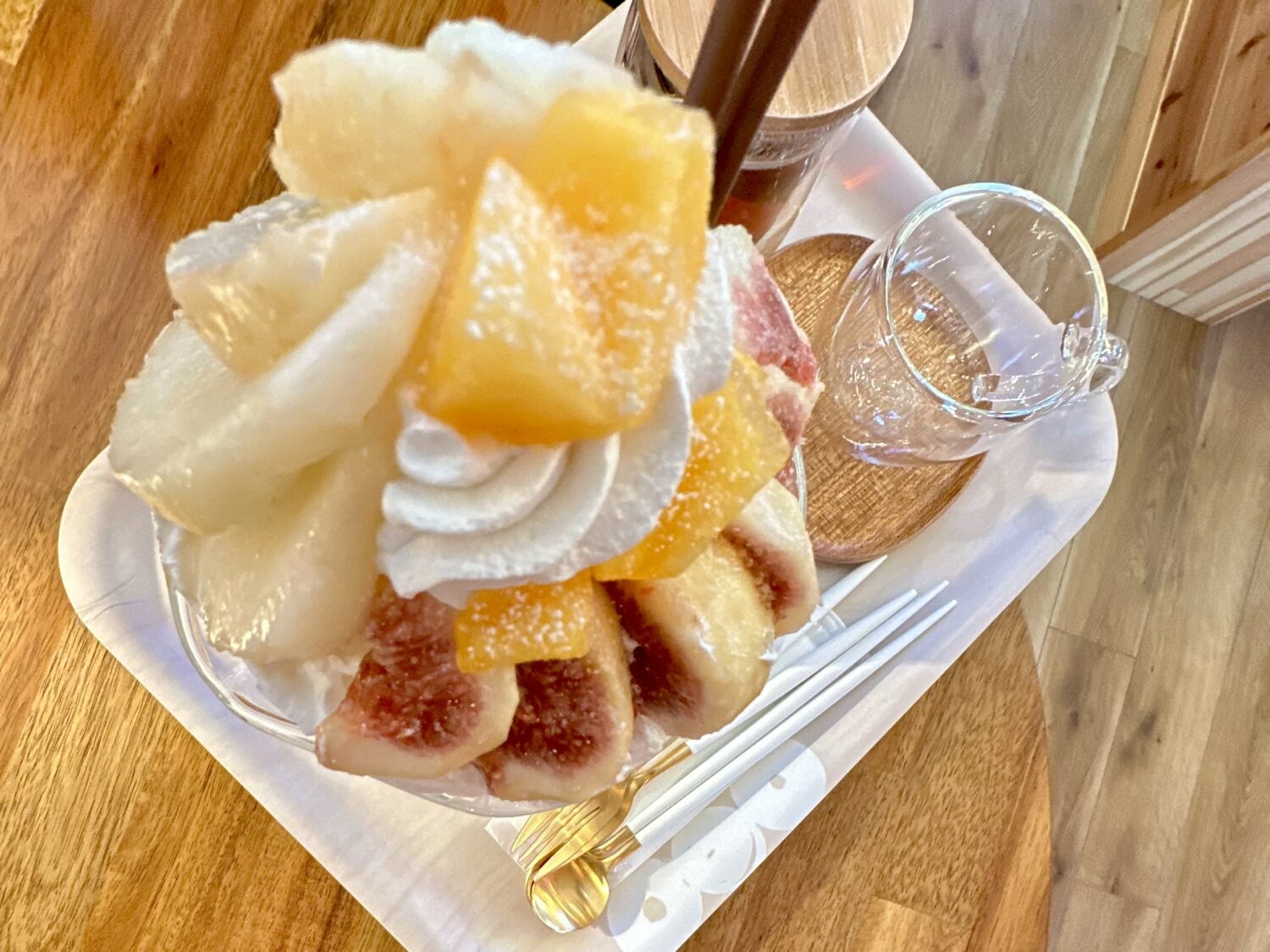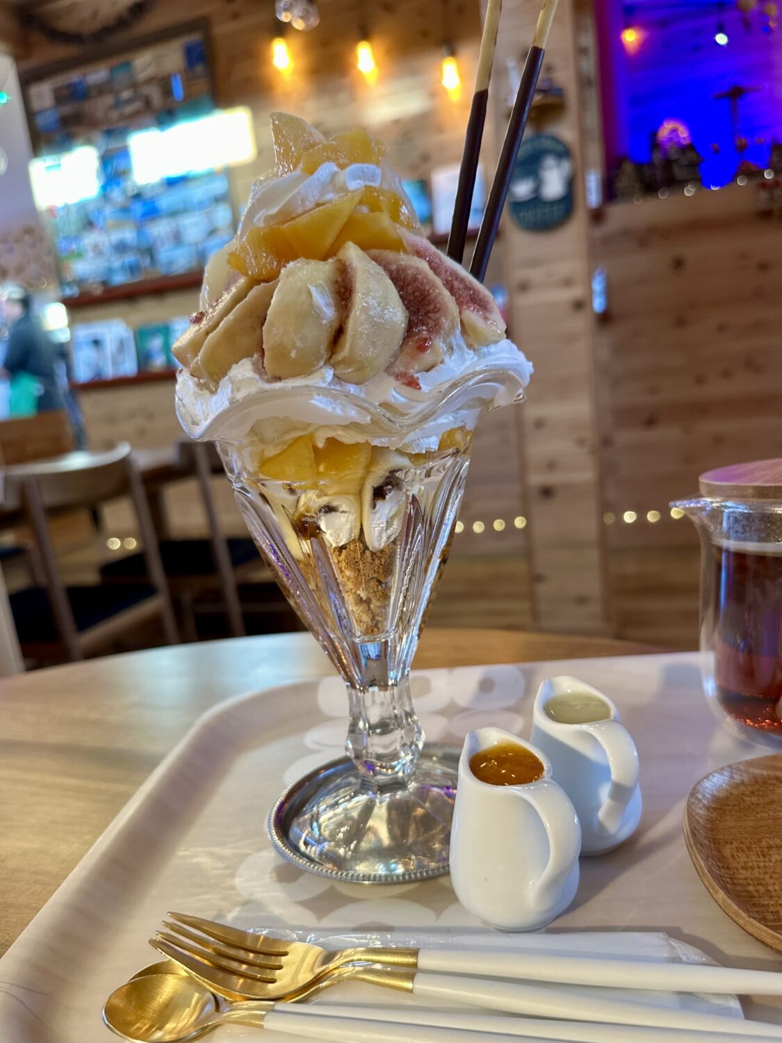 そんな、完全に雰囲気にやられたハイボールマン、やっぱりイイやづーってなって「柿とラ・フランス、無花果のパフェ ¥2,900」