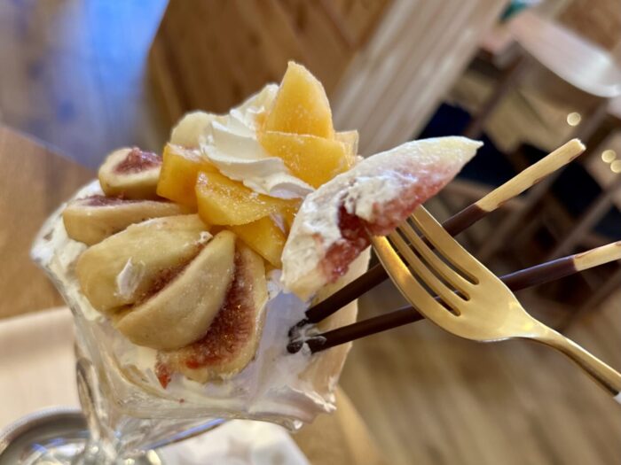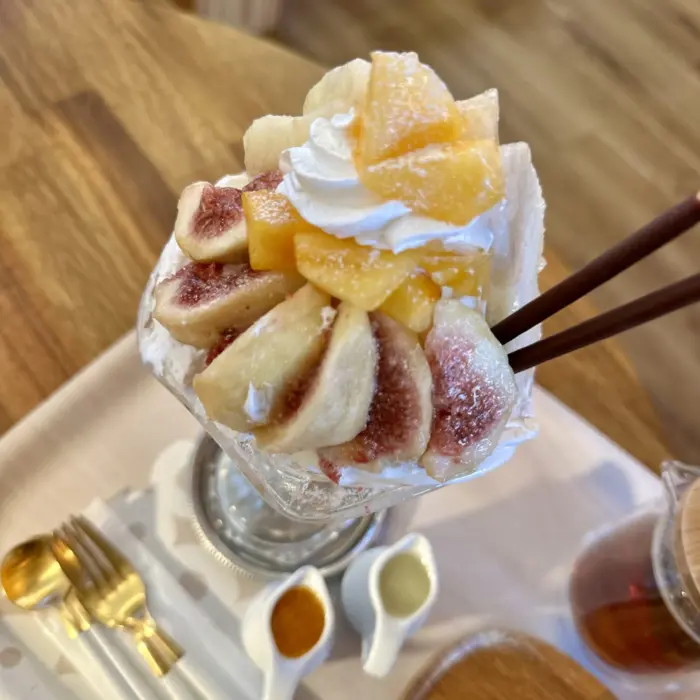 柿とラ・フランス、無花果のパフェ