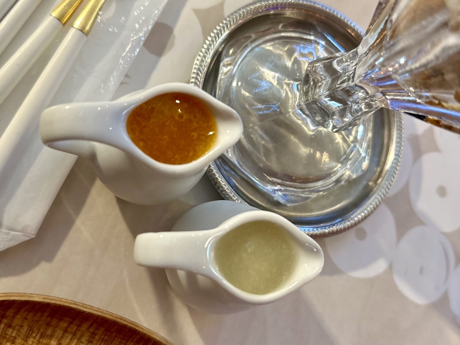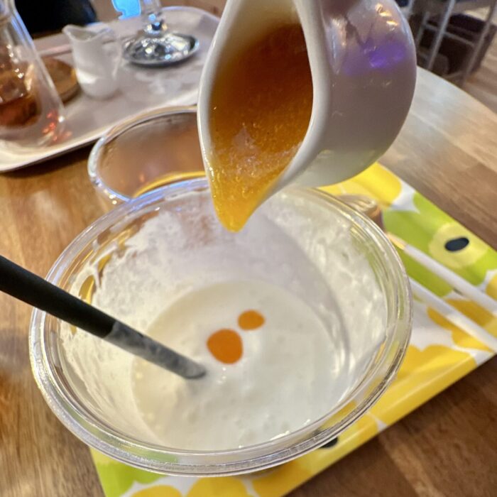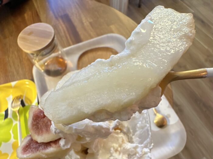 ラ・フランスと柿は、なんとカットして乗せた実とは別添えのソースも用意