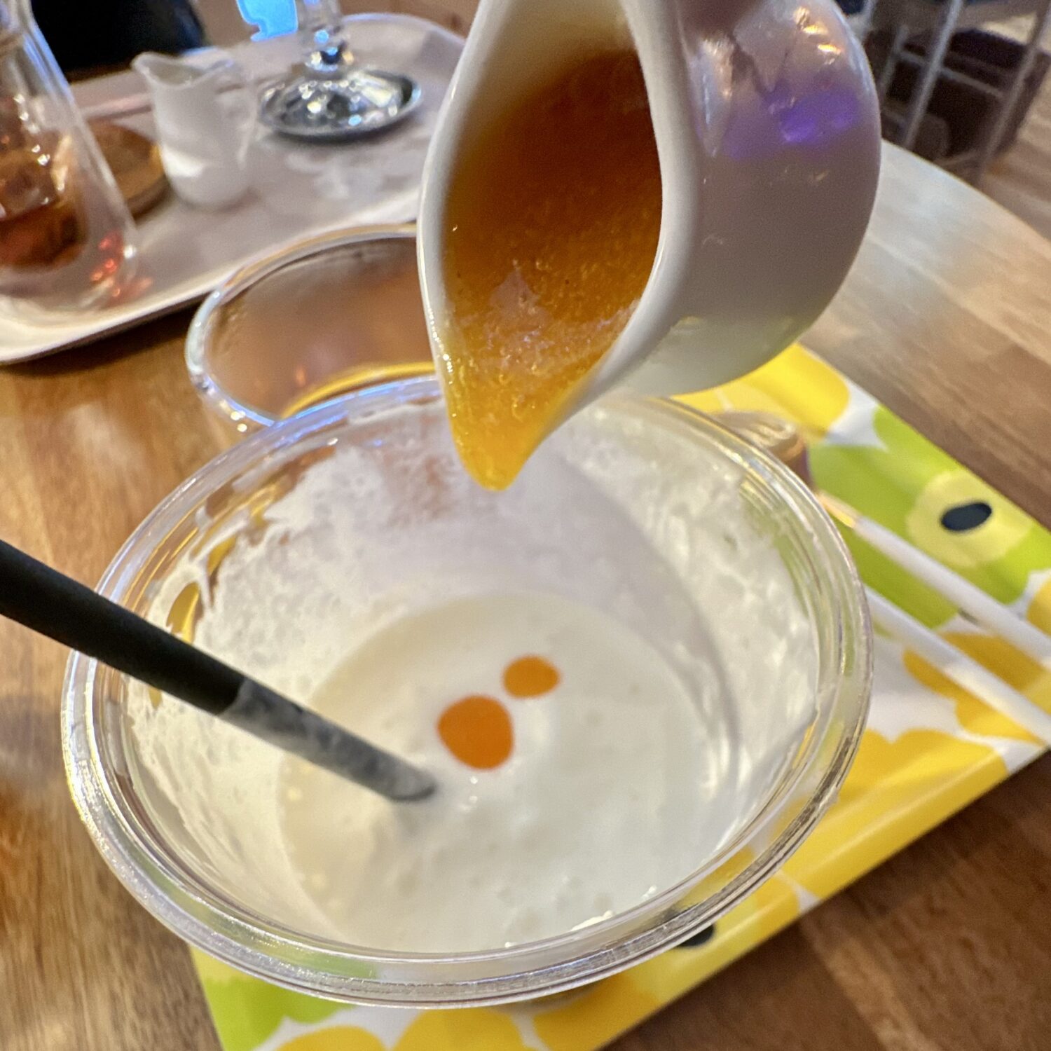 んでもって柿の果実ソースば拝借して飲んだらこれまたブッ飛ぶ美味さだわぁ(´◔ ڼ ◔`)