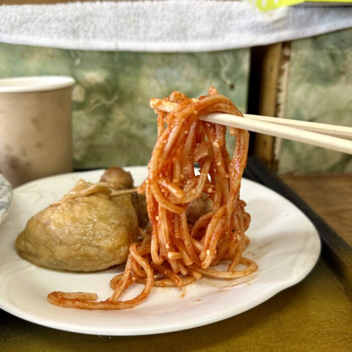 テーブルに並ぶ惣菜はもはや量り売りすらしない、カッチャの完全目視による精算制で、唐揚げ含む3品それなりに盛って250円っていう鬼安さ。