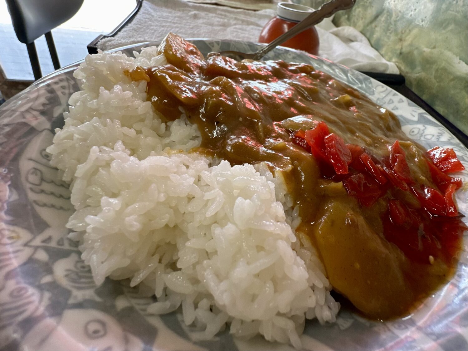 見るからにモッタラモッタラしたカレールゥが、挑発的な大盛りライスにドゥブラッとかかる様子はもうアート