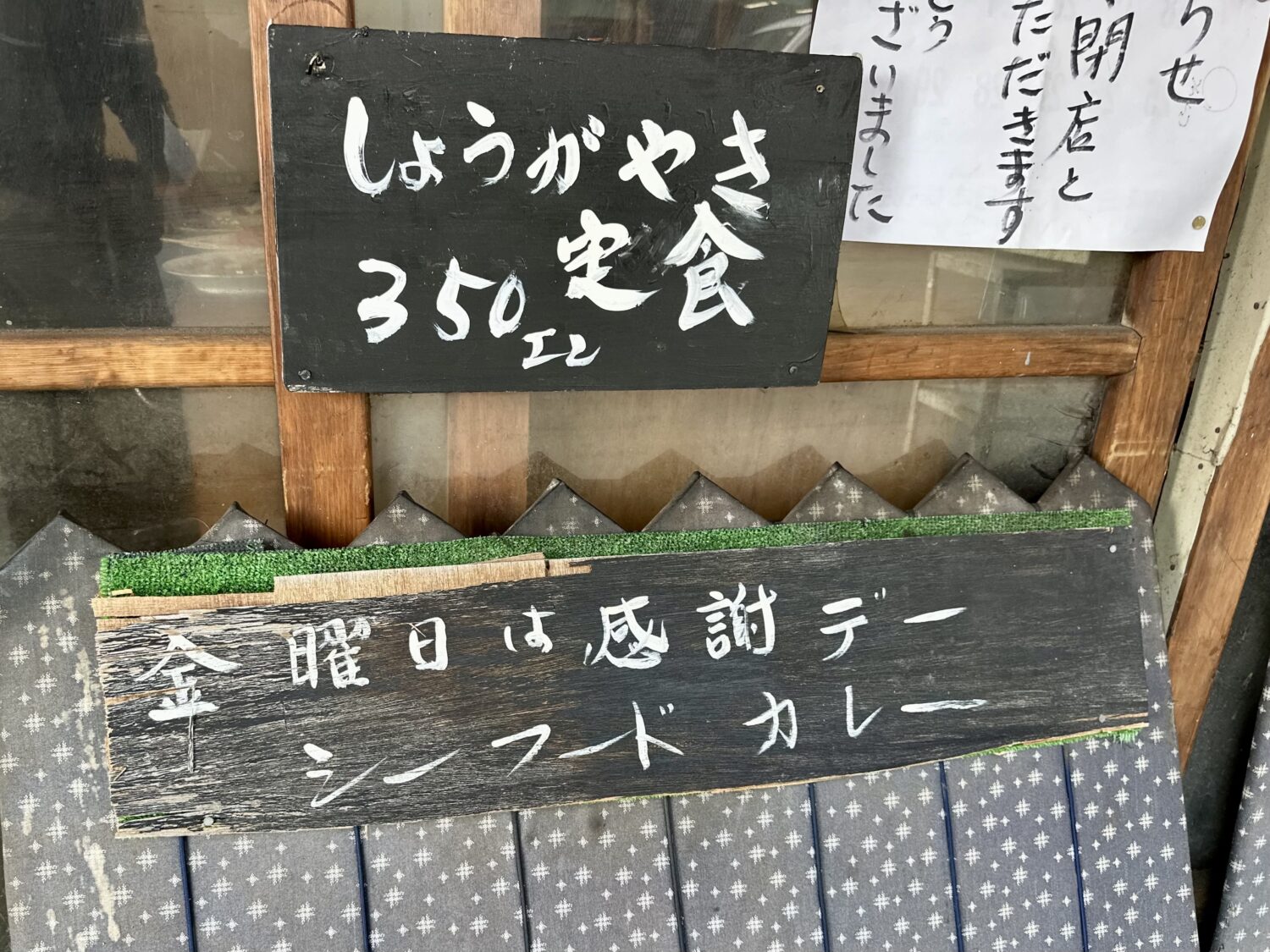 惣菜あり、生姜焼き定食あり、そして金曜だけのシーフードカレーあり。