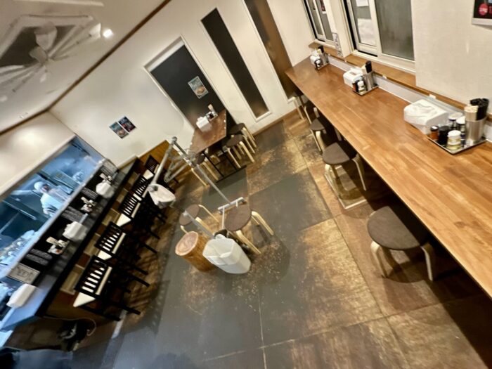 前回訪問時から若干変更の店内、なんと待望のテーブル席が増えてらでばぁ(;´∀`)