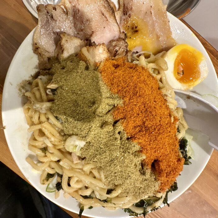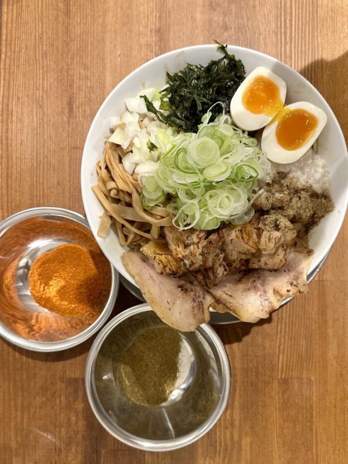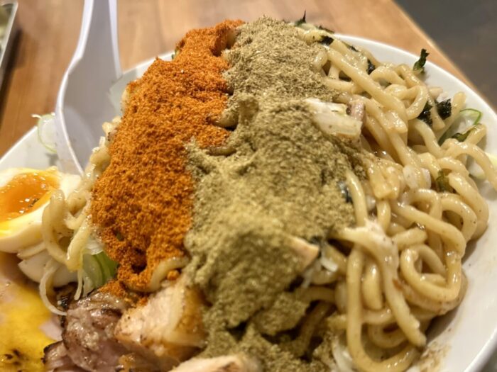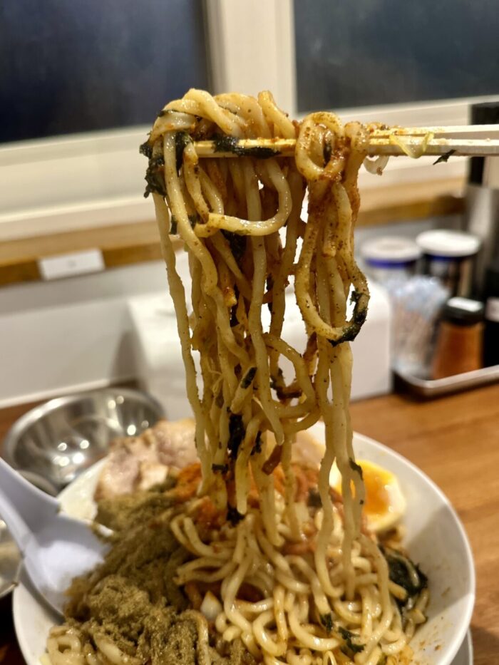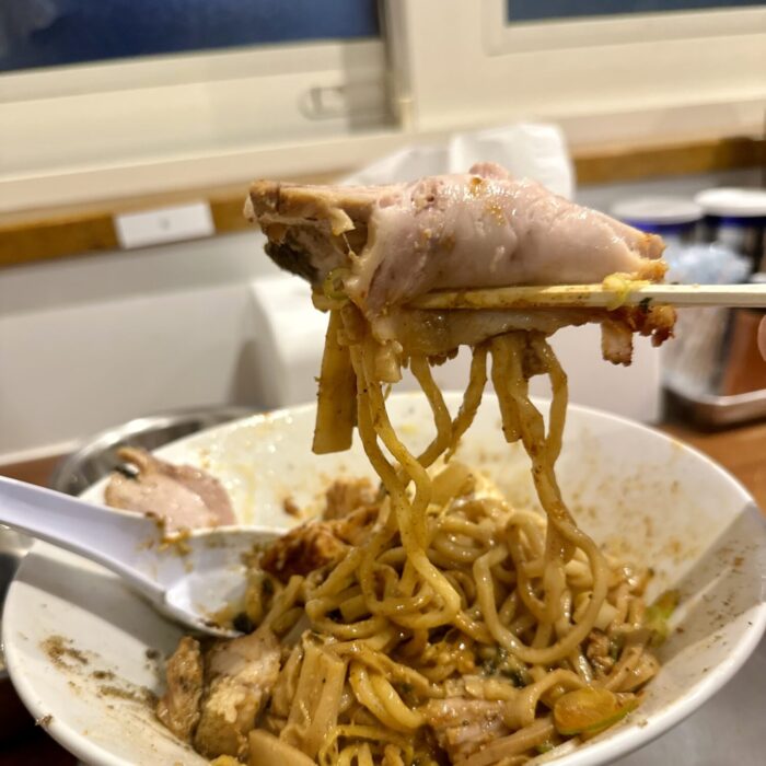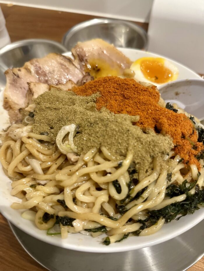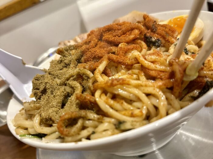 4. 朝ラーから人気の【中華そば丸正 滝本商店】で赤と青を合わせた”虚式”ムラサギな油そば