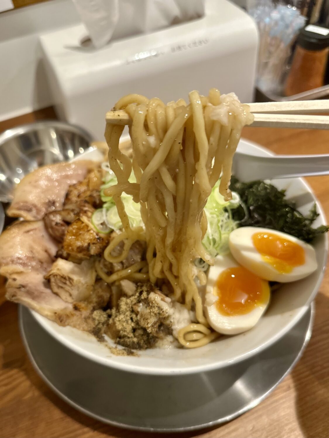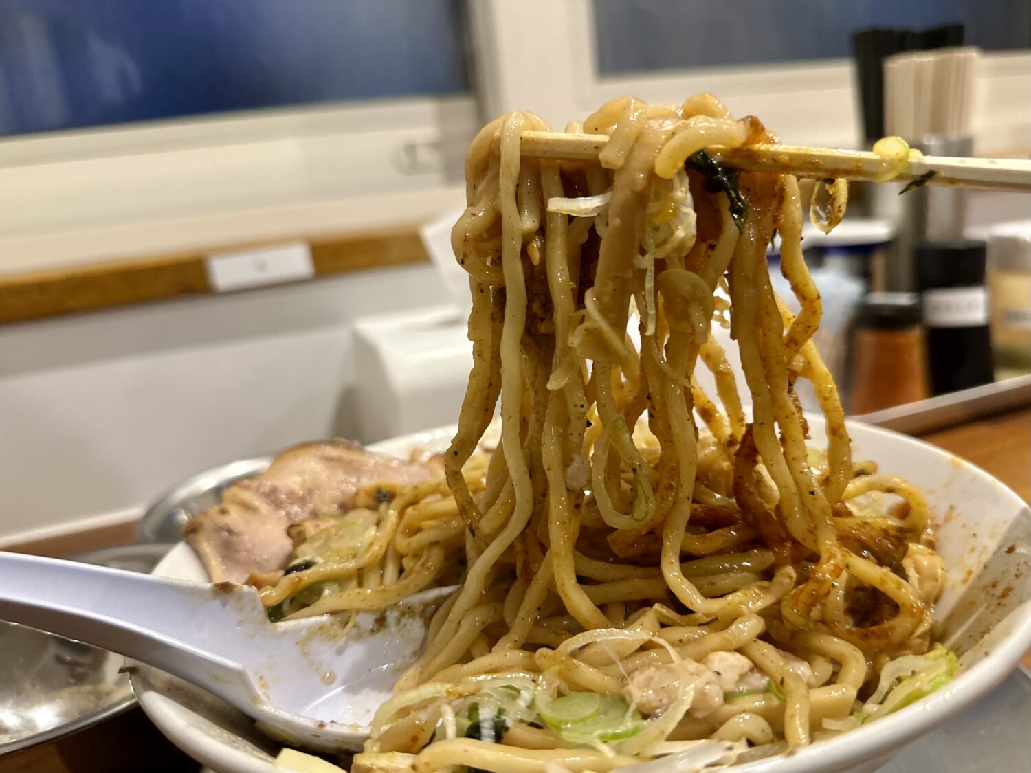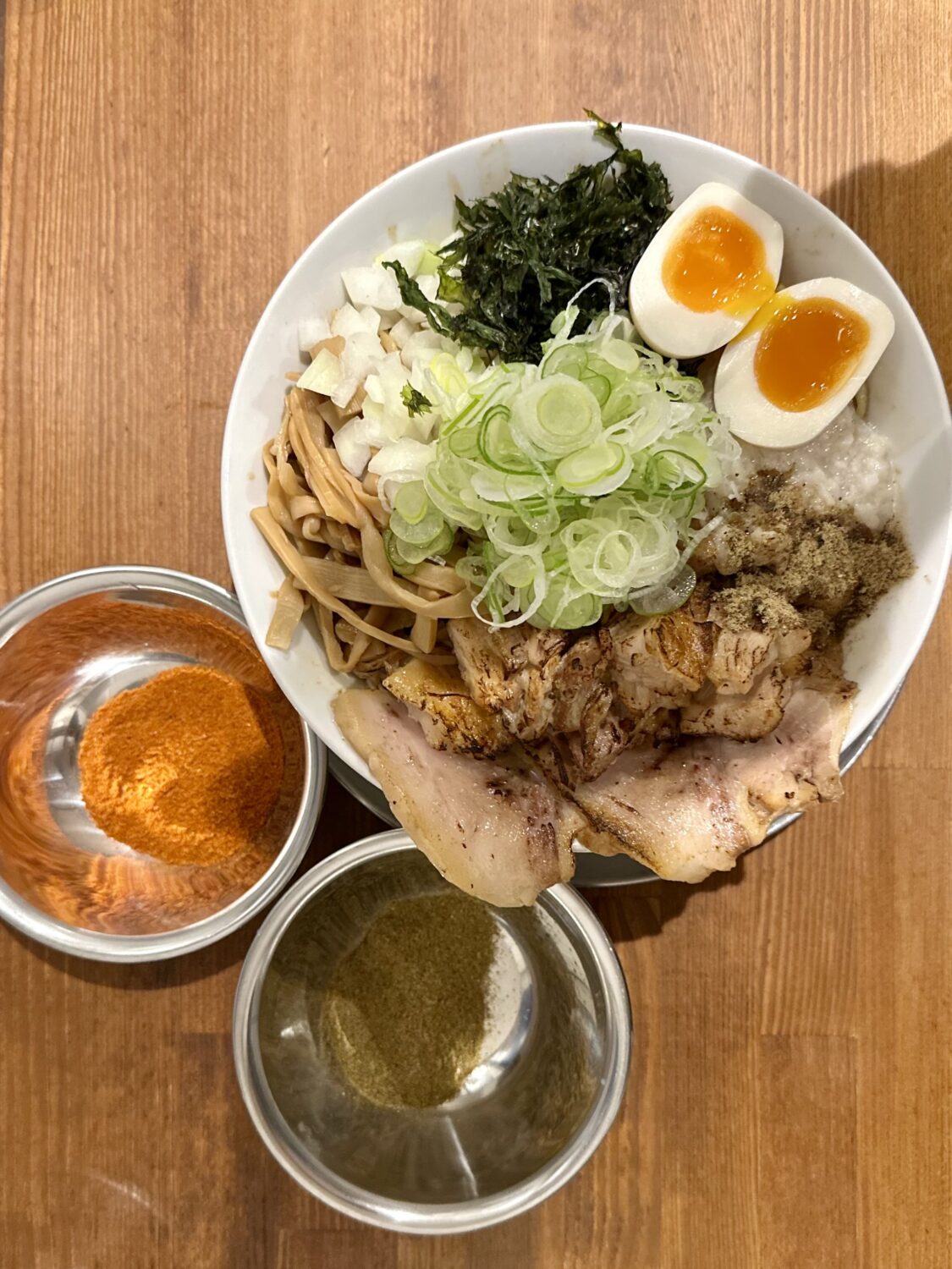 4. 朝ラーから人気の【中華そば丸正 滝本商店】で赤と青を合わせた”虚式”ムラサギな油そば