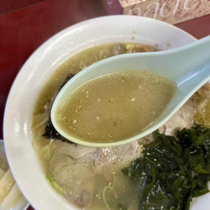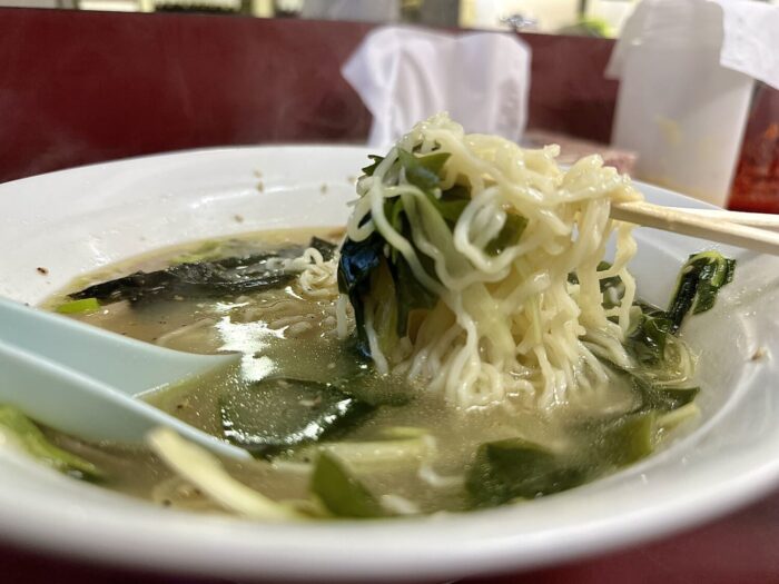自慢の豚骨スープにキリッと効かせた塩の香りで、朝でも昼でもきっと夜に飲んでも合う味わい