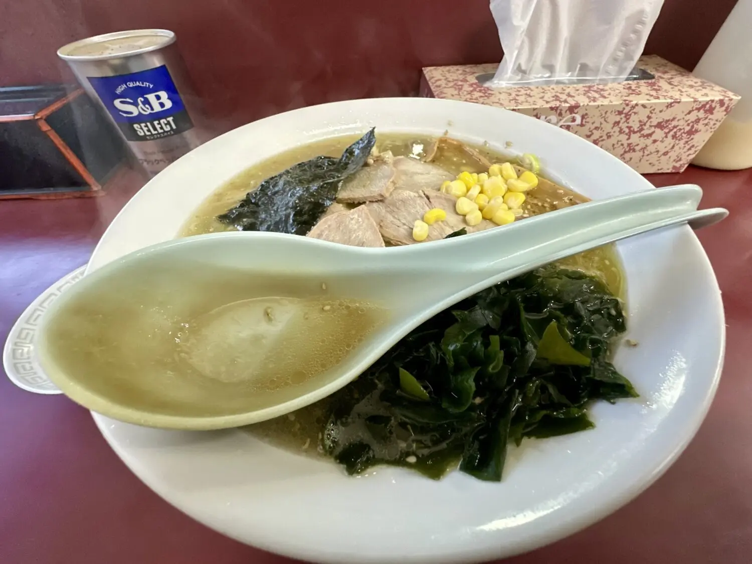 自慢の豚骨スープにキリッと効かせた塩の香りで、朝でも昼でもきっと夜に飲んでも合う味わい