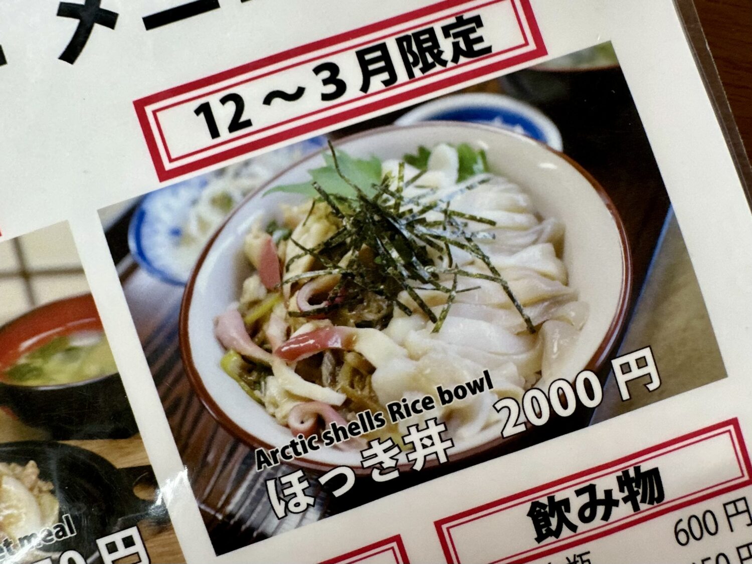 | 備考 | ほっき丼の提供は3/31まで |