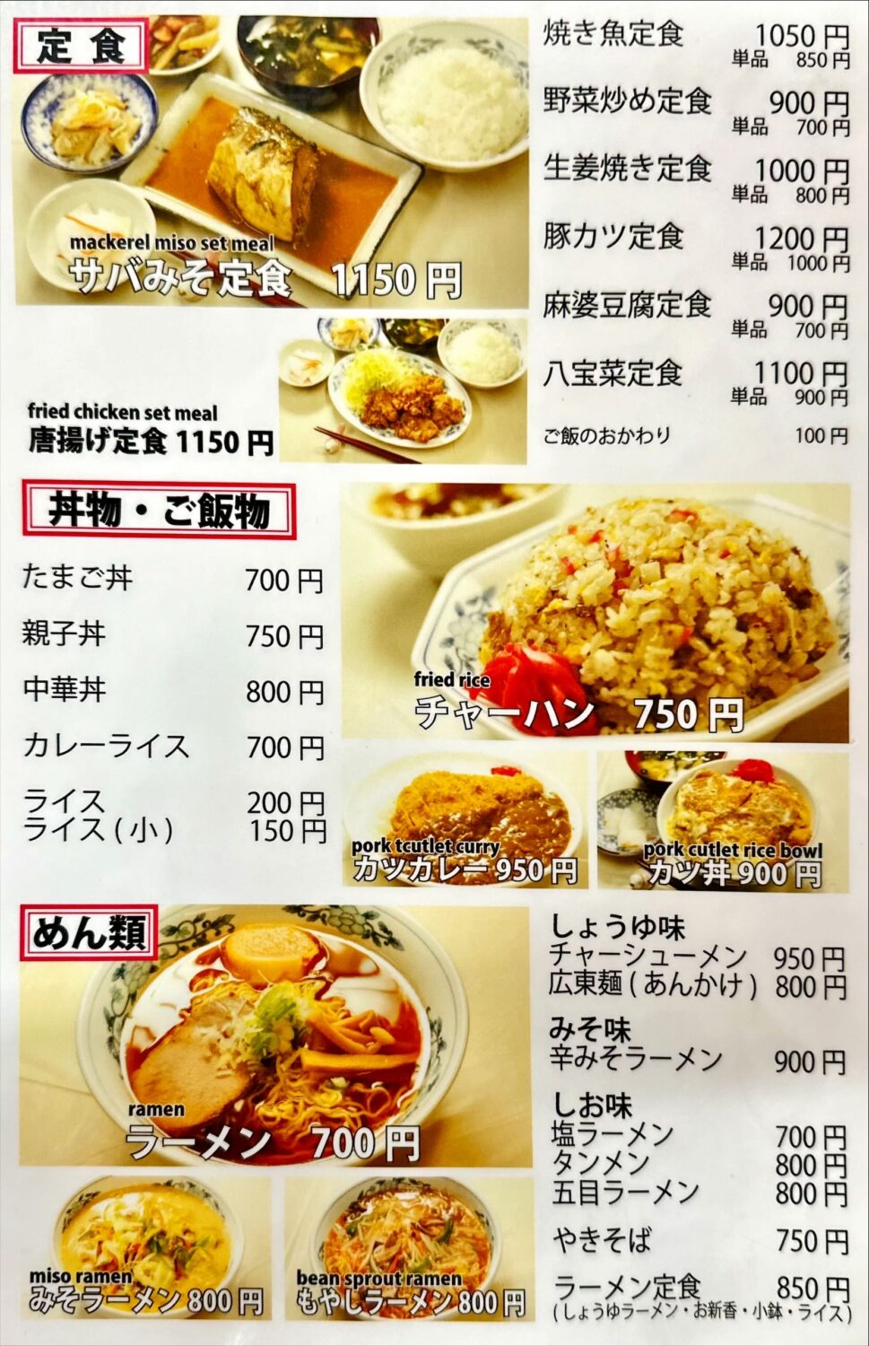 | オーダー | 券売機、口頭 |