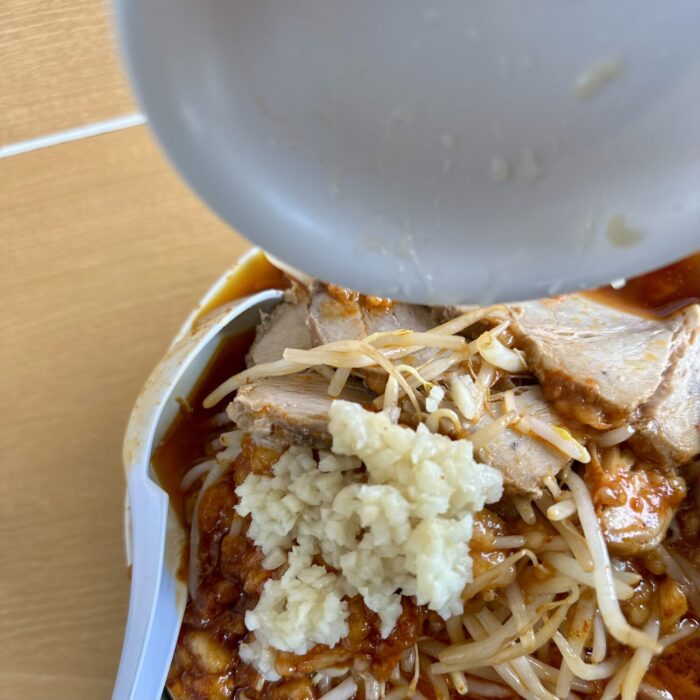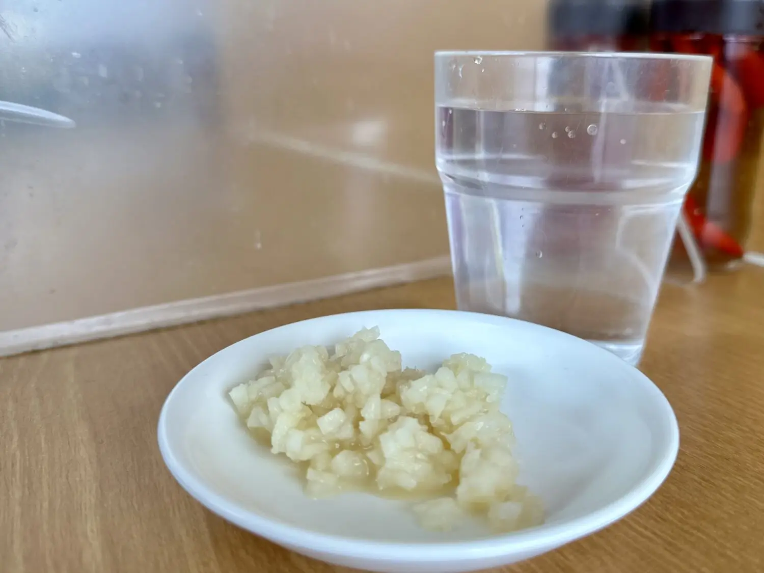 セルフのキザミニンニク散らして喰えば空の向こうで死んだジサマが手を振るレベル。