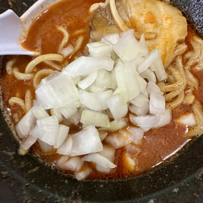 ちなみに+120円で辛味増しも可能、けど楽しい週末を控えてオチリ死なすのはちょっとリスクが高すぎて