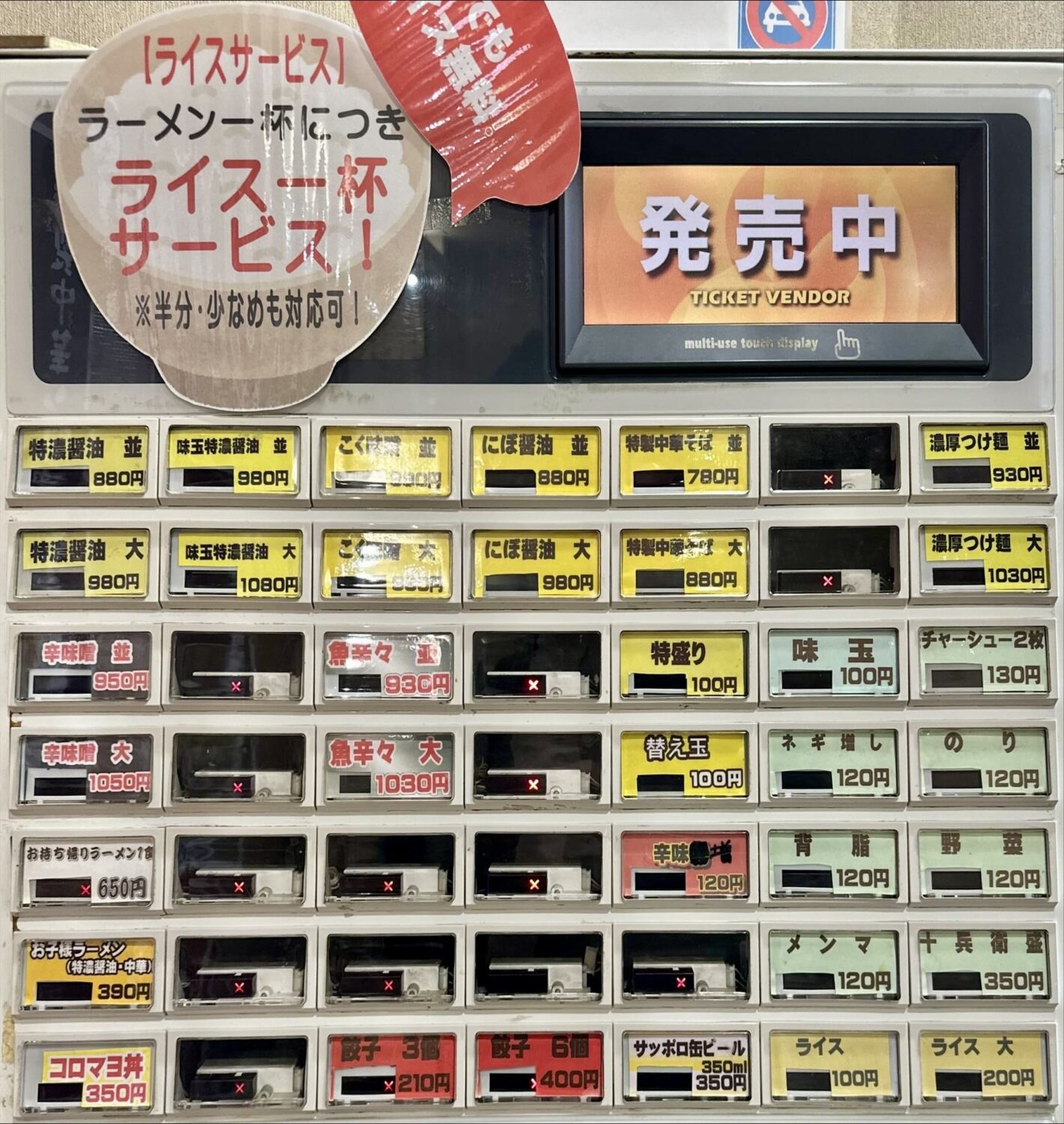注文はいつもの券売機にて、と慣れてるつもりのハイボールマン、ここで痛恨のミス犯す、