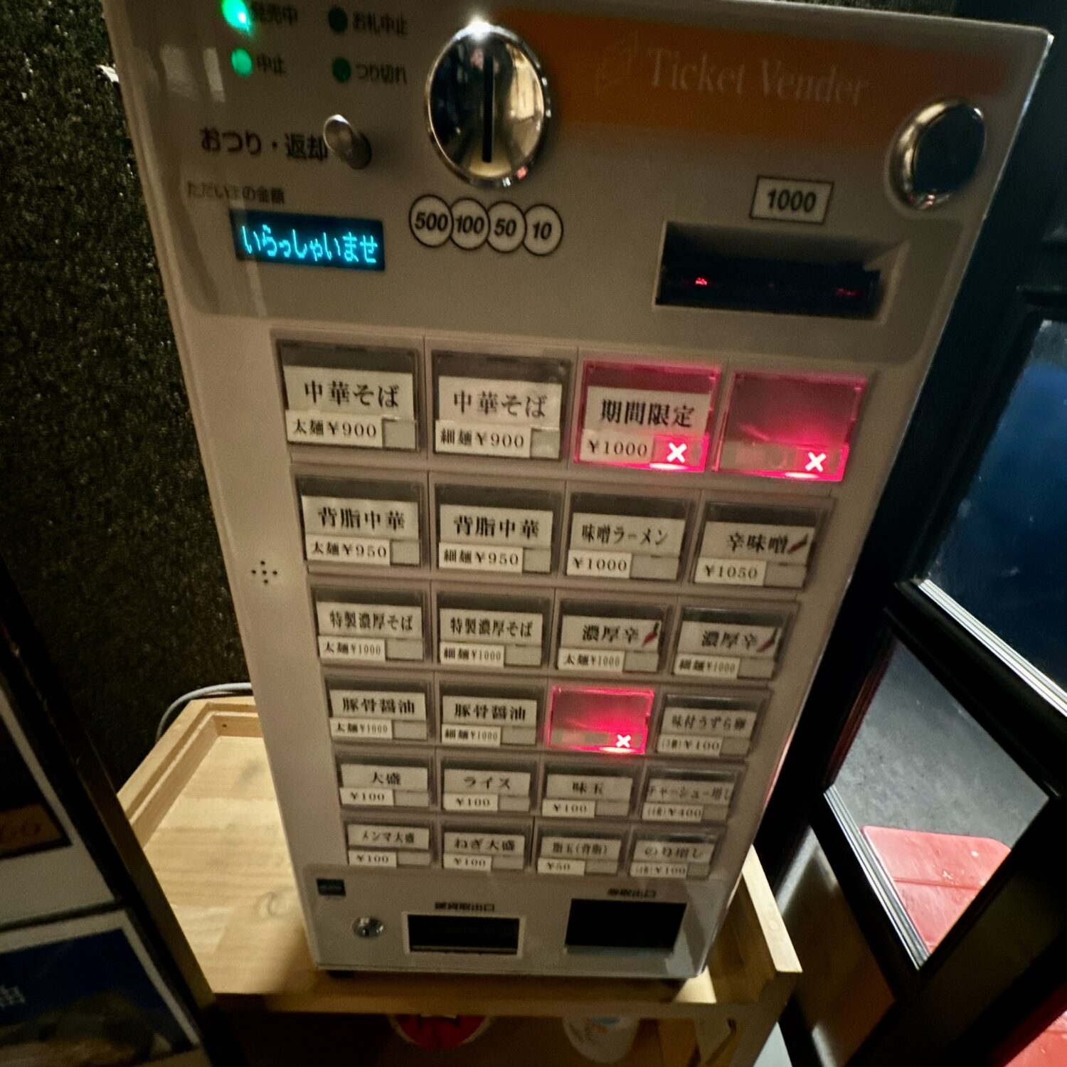 とにもかくにもまずは入ってすぐ右手の券売機から、朝起きたての小っちゃい目で必死のパッチでポッチポチよ