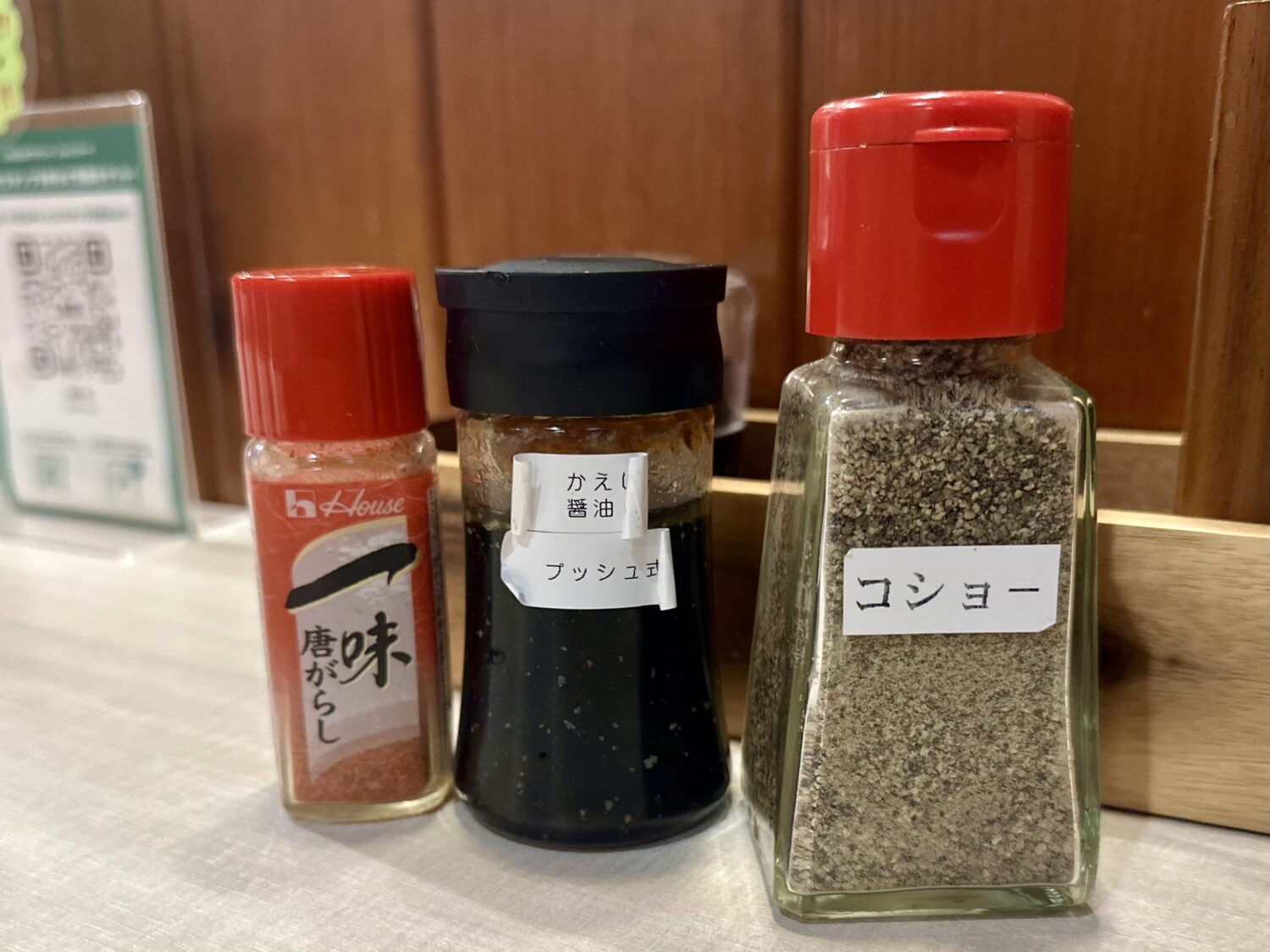 味変調味料はご覧の3種、どうしてもアレガーコレガーな人は店員さんに要相談で