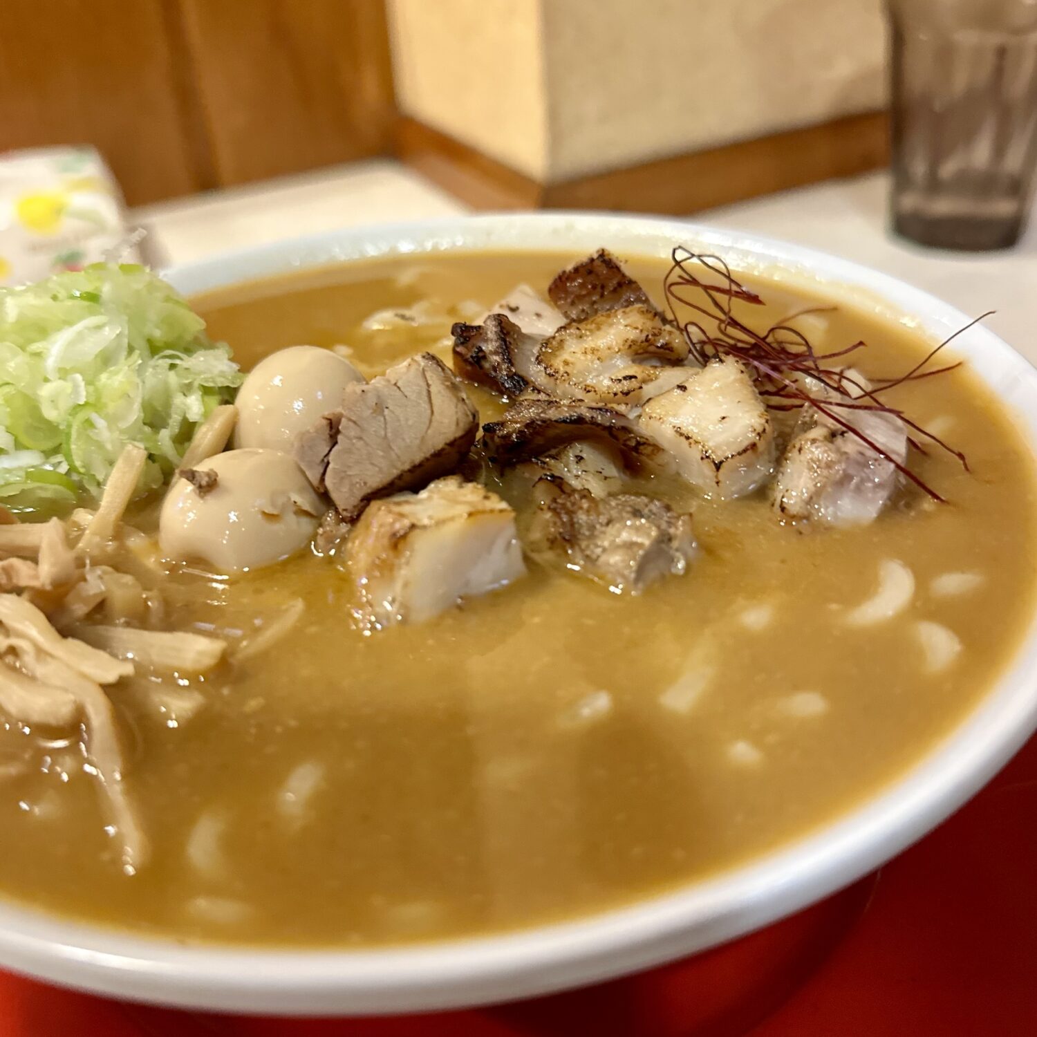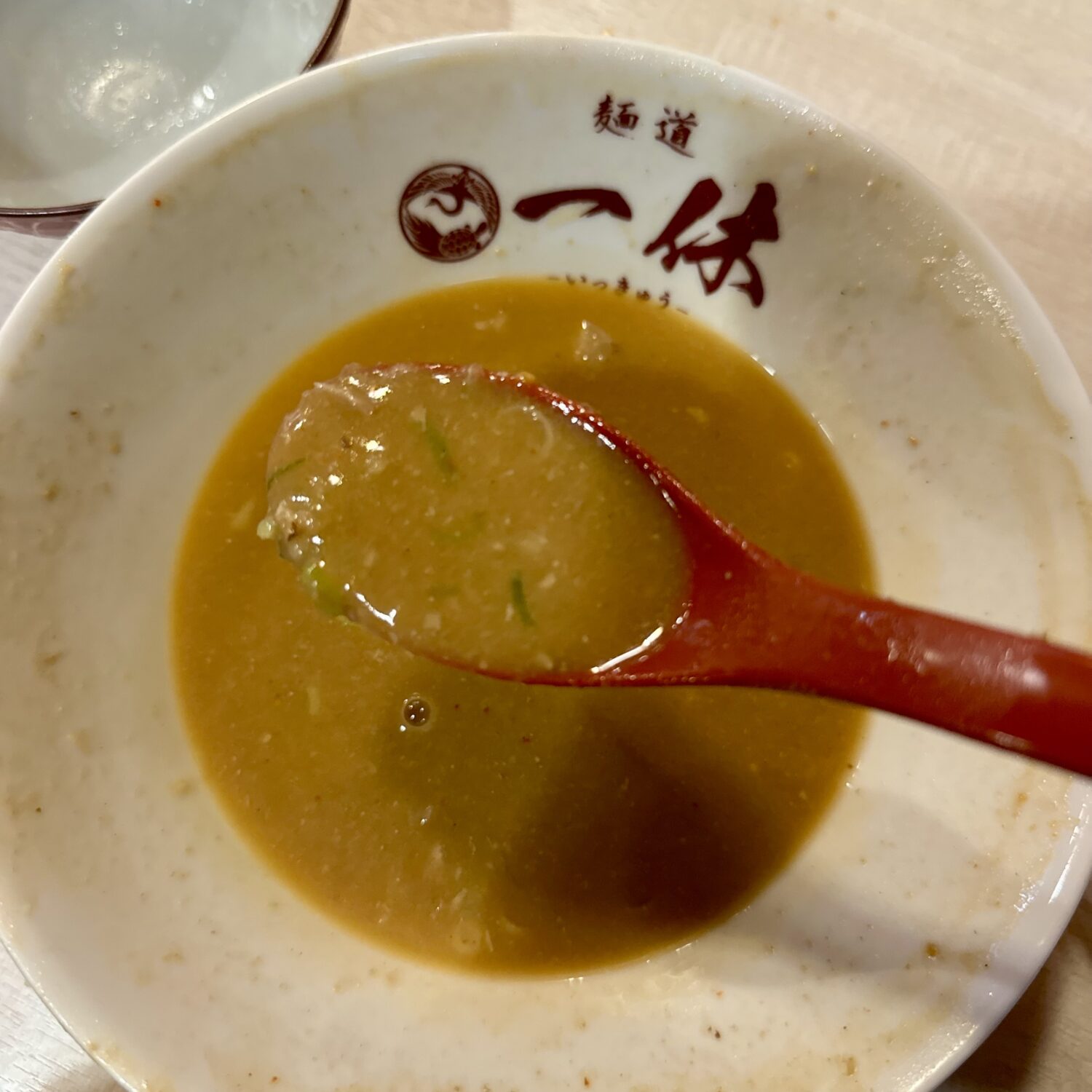 一休自慢の”濃厚”豚骨煮干しスープに味噌、しかも黄金系のビリッと辛味持ってくるセンスの高さ。