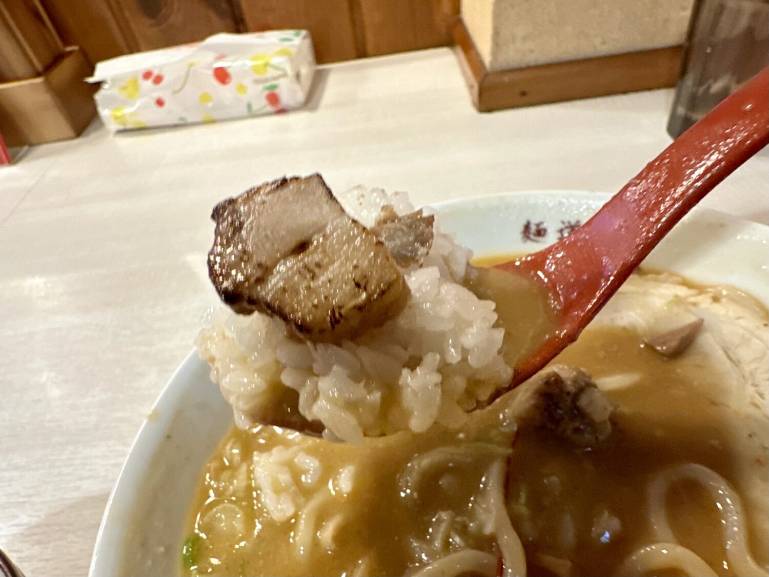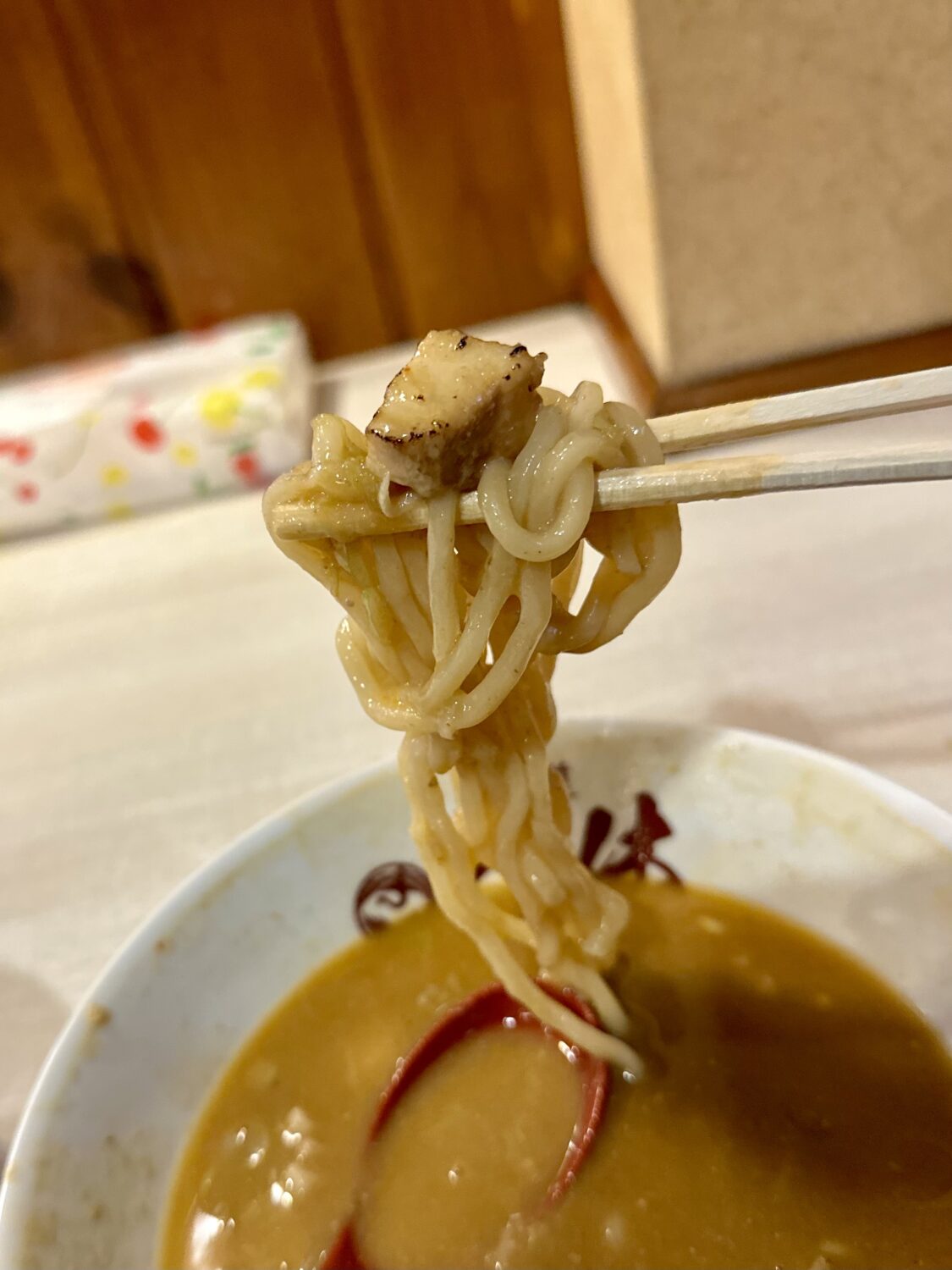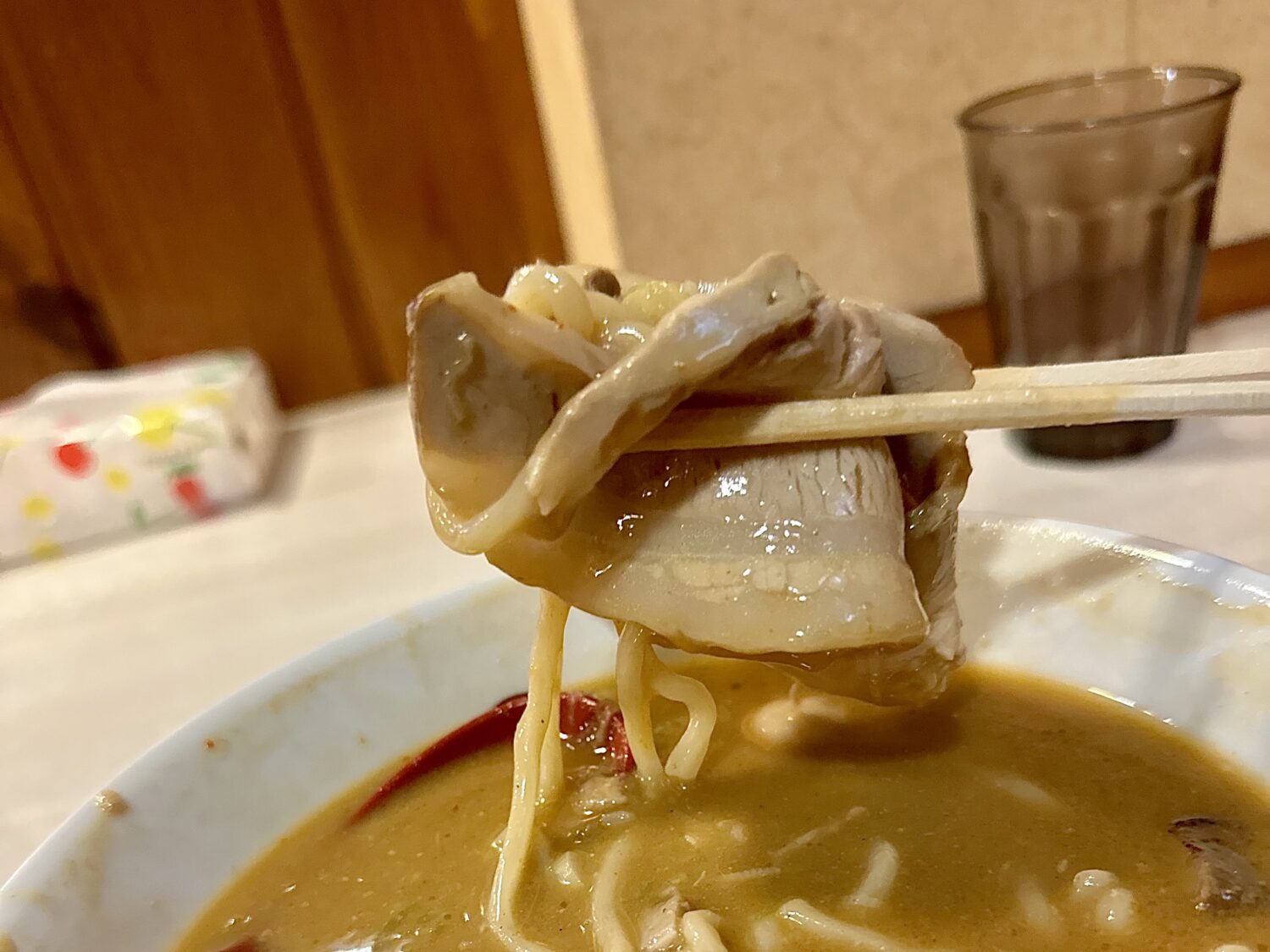 パワフルなスープにもまったく引けを取らないその歯応えは、もはや安心を喰ってるのと同義