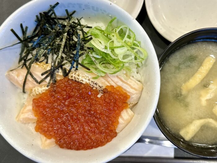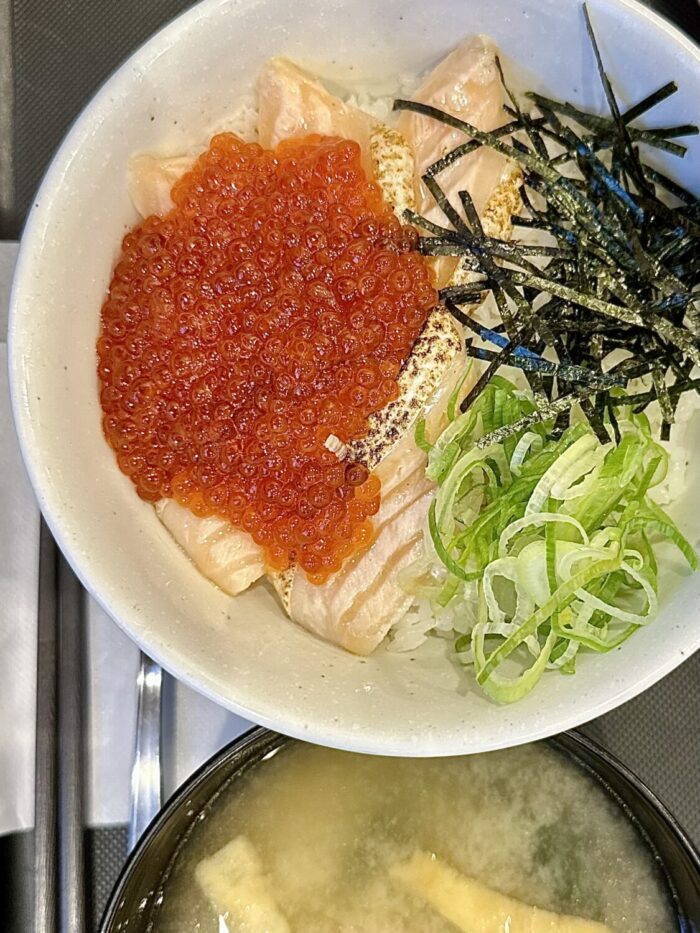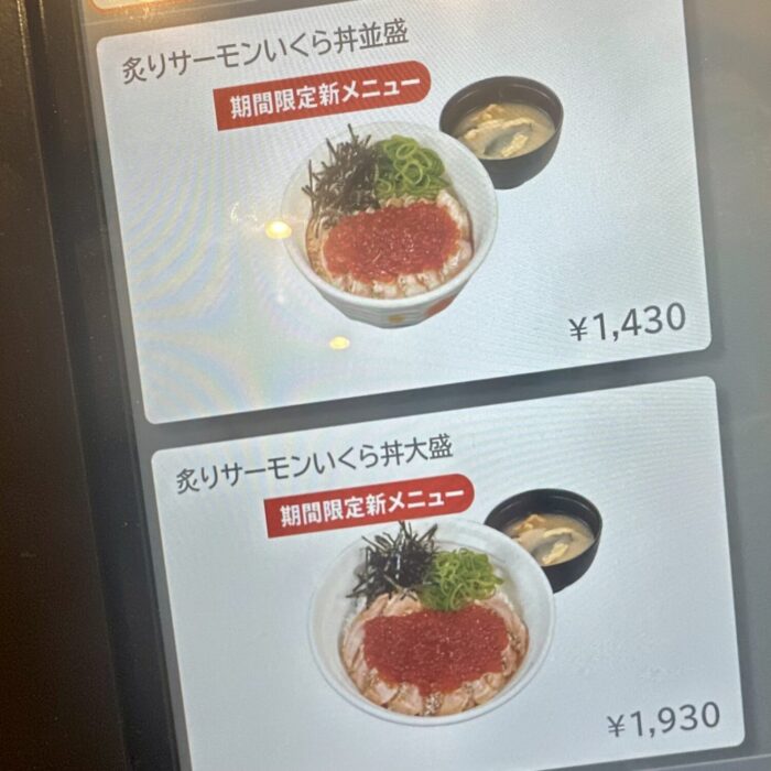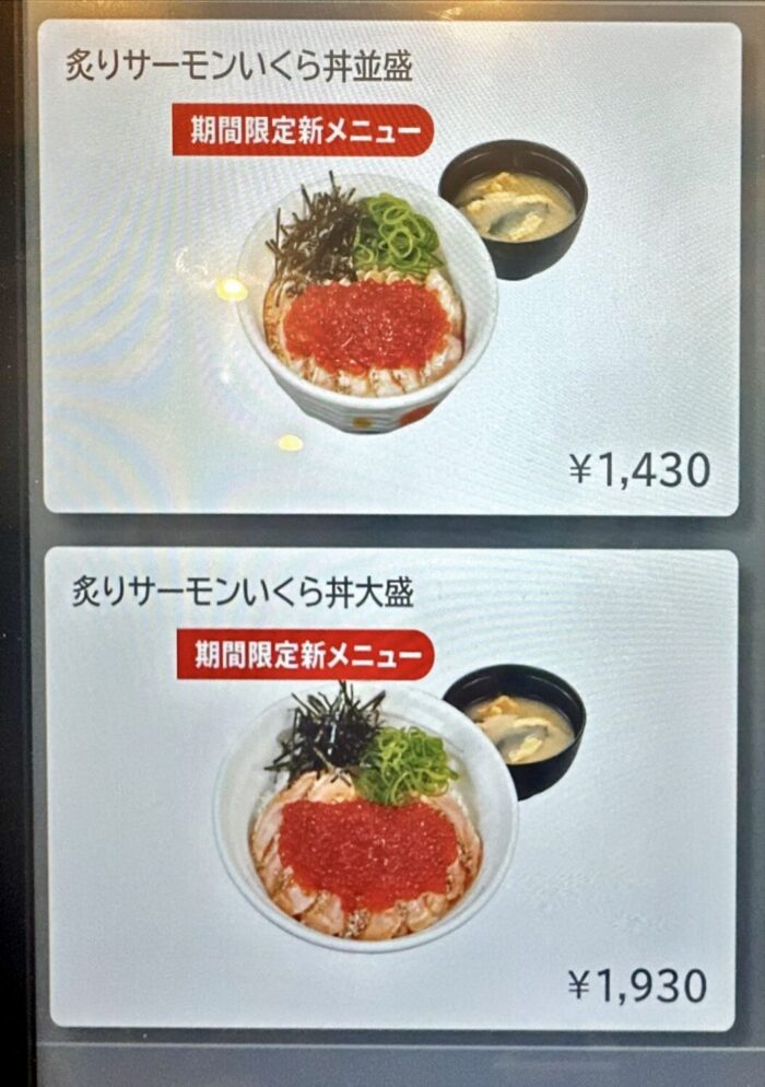 狙うは期間限定、それもこのボーナス時期にはちょんどいいちょいプレミアムな【炙りサーモンいくら丼】税込1,480円。