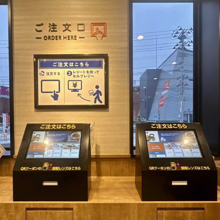 と、注文決めたら今度は右手側の機械でお支払い、オーダーマシン側から発行されたQRコード読ませてチャリンチャリンね(´∀`=)