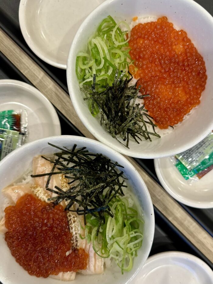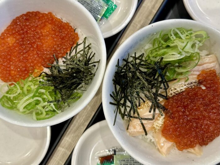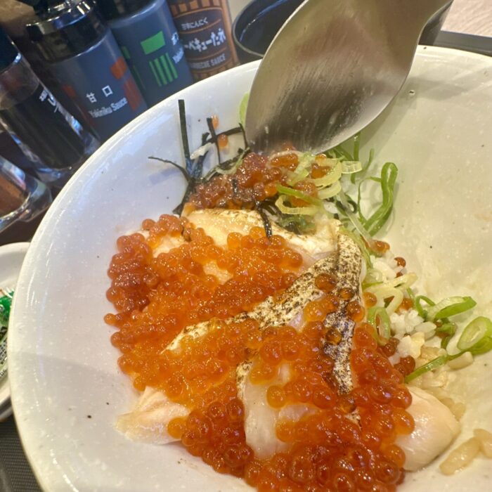 それも鶏と卵の陸上版じゃない、イクラとサーモンって海の人気者に溢れた親子丼を期間限定で、しかもまだギリお求めやすいお値段で。