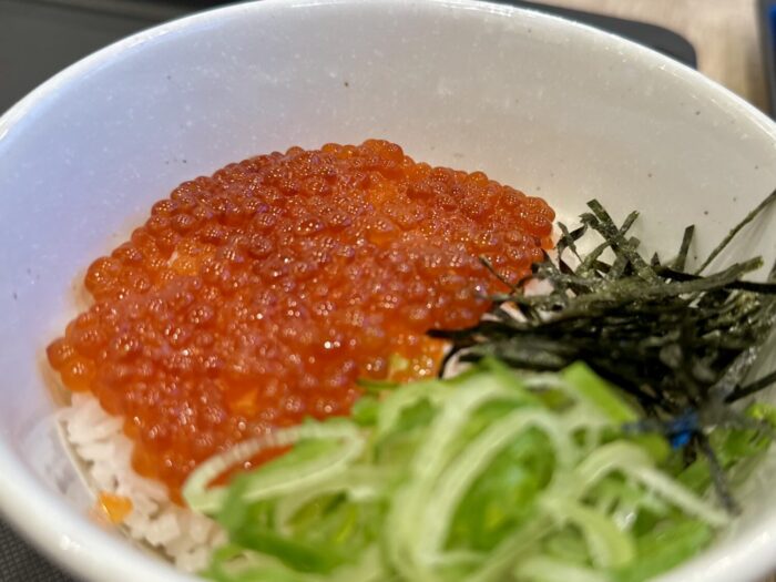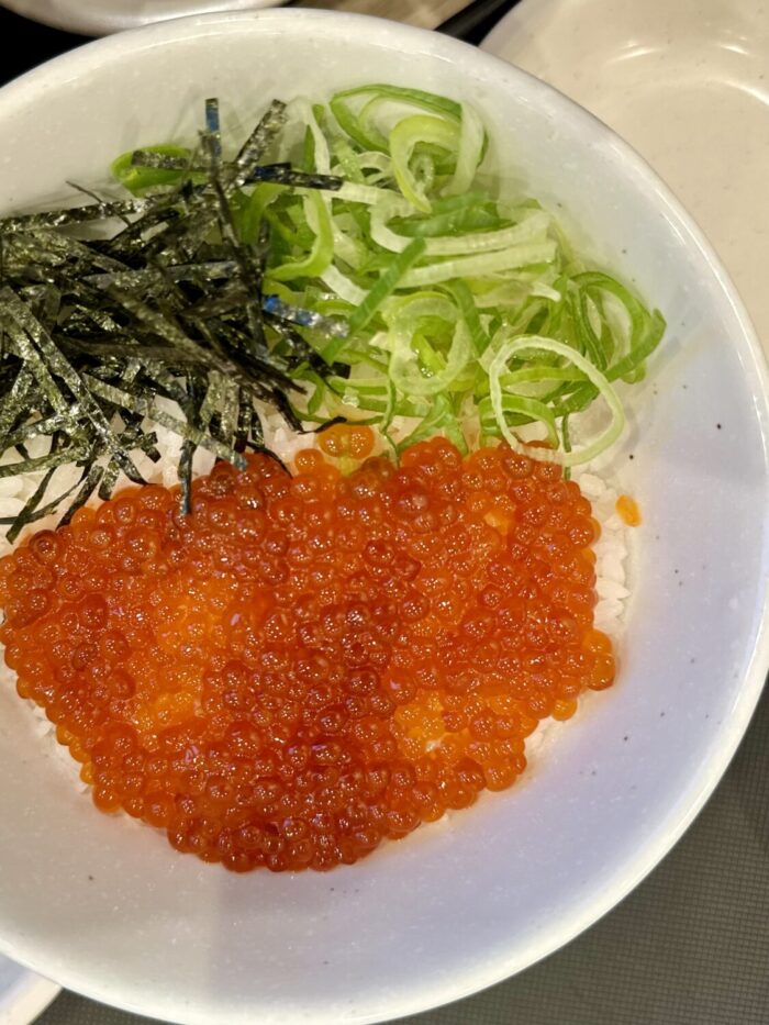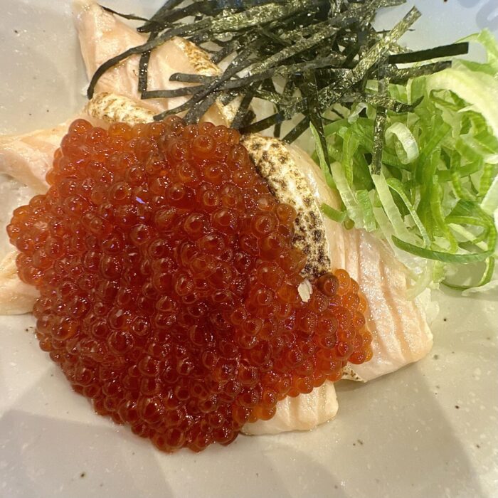 プチプチイクラにトロントロンの炙りのサーモン、そこに刻み海苔だシャキシャキネギだって乗ってんだぉん、それって最高がヘソ出して歩いてるみたいなもんだぉん(*´ω`*)