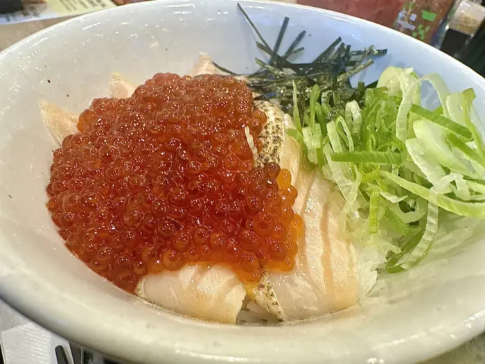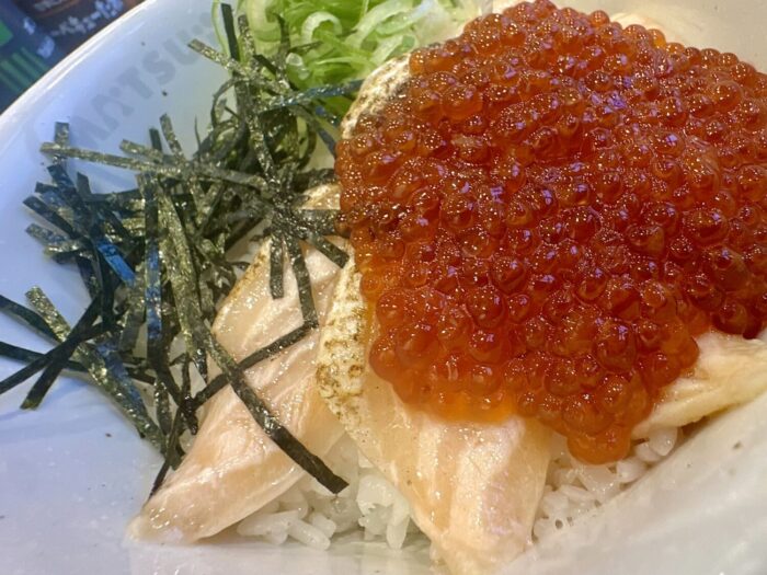 そんな正直者のハイボールマン、オーダーするのは同じく眩しすぎる期間限定「炙りサーモンいくら丼 ¥1,480」