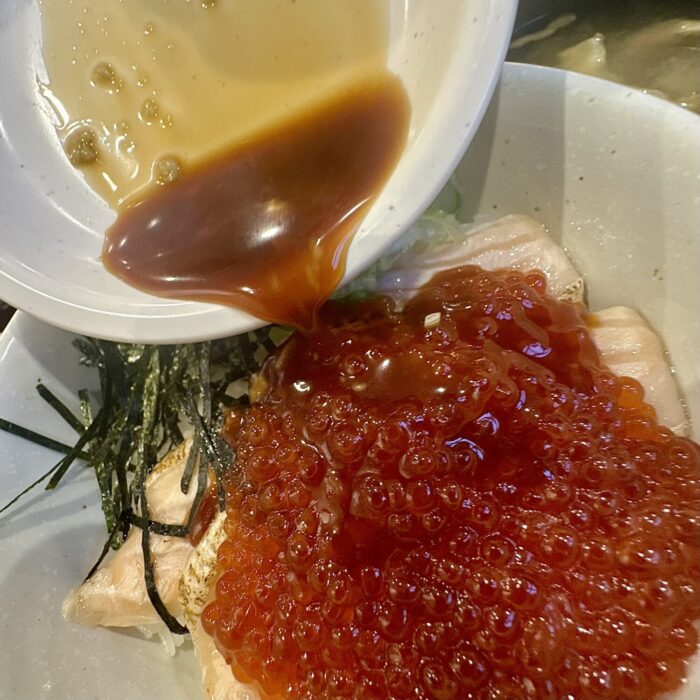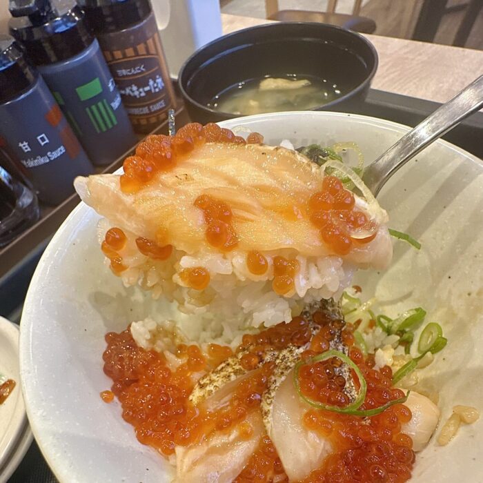 軽く炙ったトロサーモンに、真っ赤に煌めくイクラをドン!、まさに美しすぎる海の親子丼がそこにはあって。