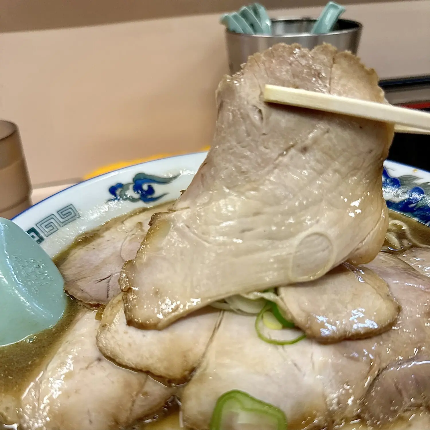表面には隙間なくチャーシューが敷き並べてあり、あらやだ恥ずかしがり屋さんなのねぇ、と呟くまでがマイルール(๑・∀・๑)