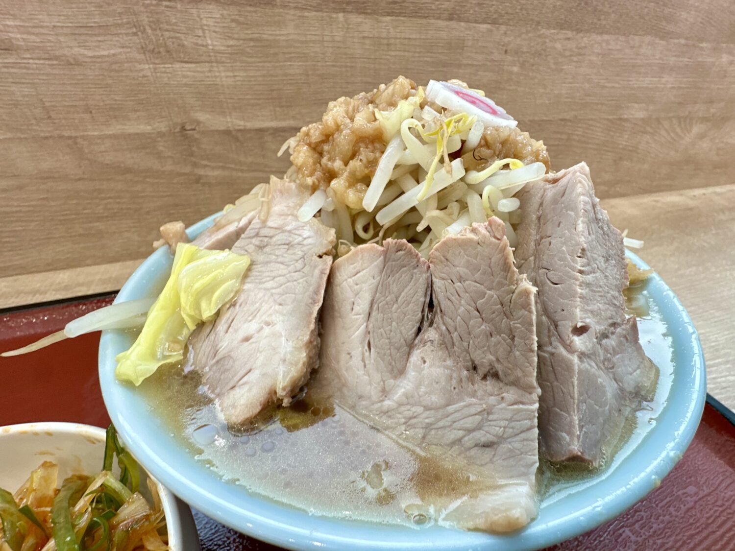 標準ブタ2枚のところ計5枚分ものブタになる「肉増し」、この上にさらに「肉増しダブル」っていうブタ8枚のヘヴィネスメニューも用意