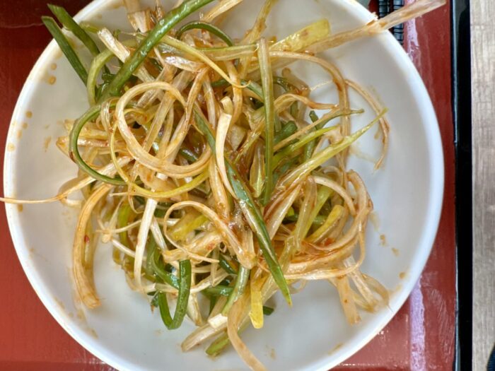 別皿の辛ネギ、いつ入れる?、それとも下から見るか横から見るか