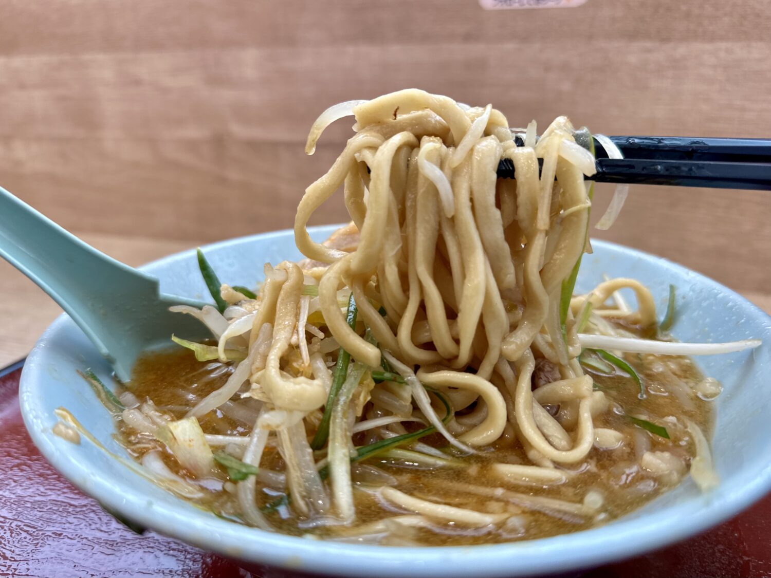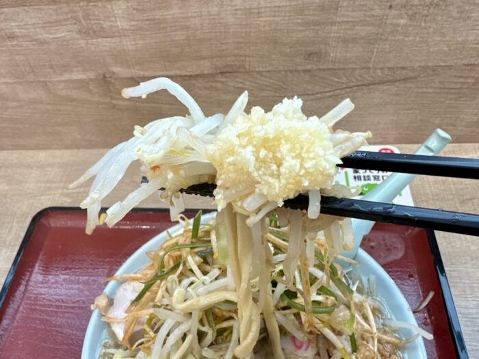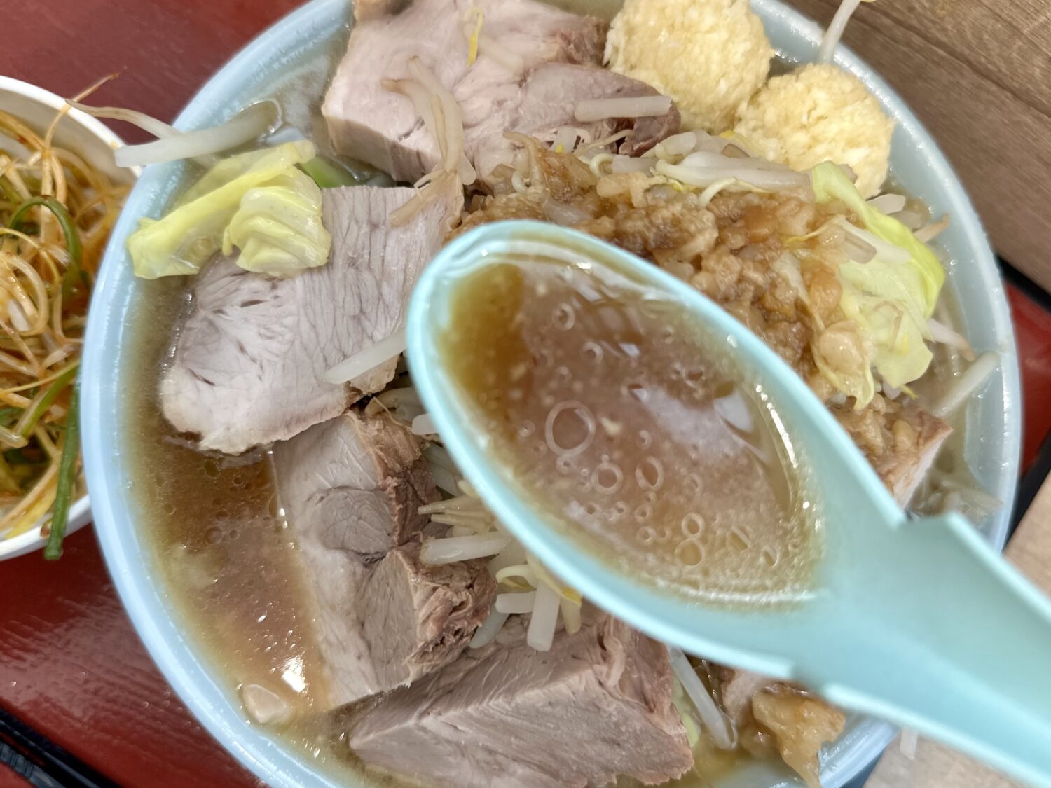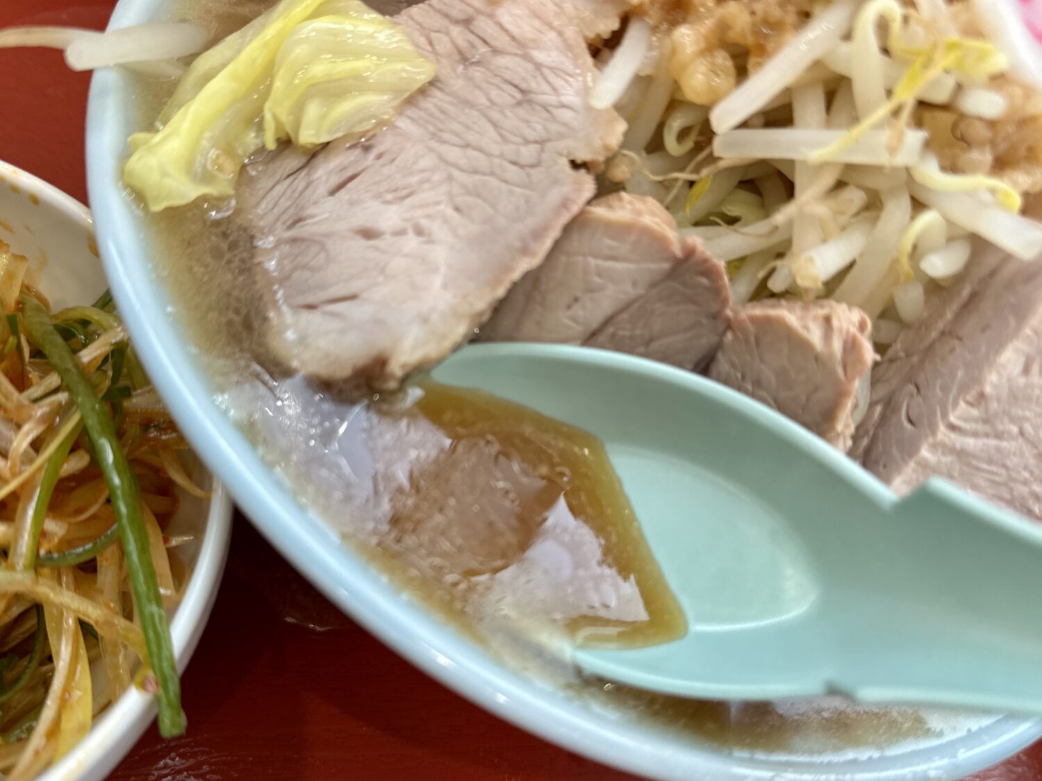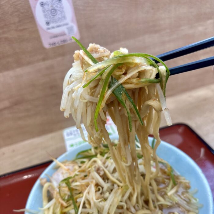 カラメ指定ナシに辛ネギ成分が溶け込んだスープの塩分濃度はちょんどよく、ヤワメヌルメにホンノリカラメでちょんどよし
