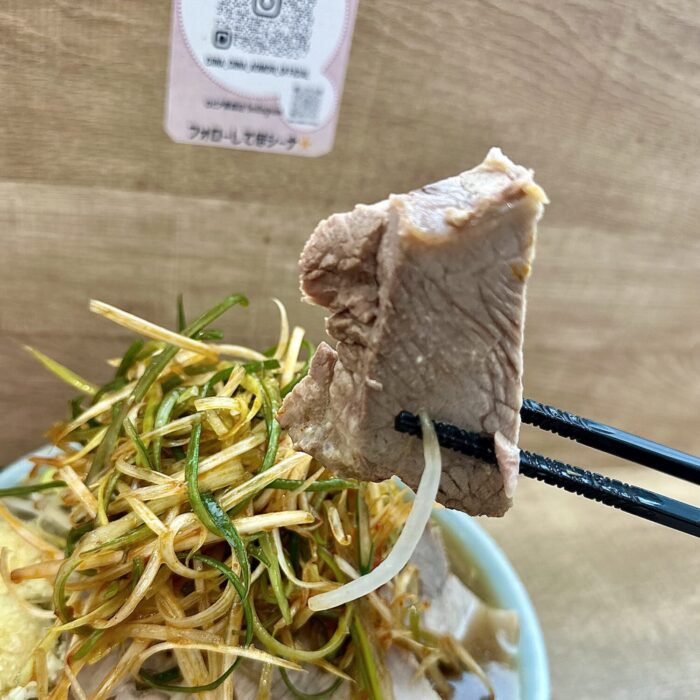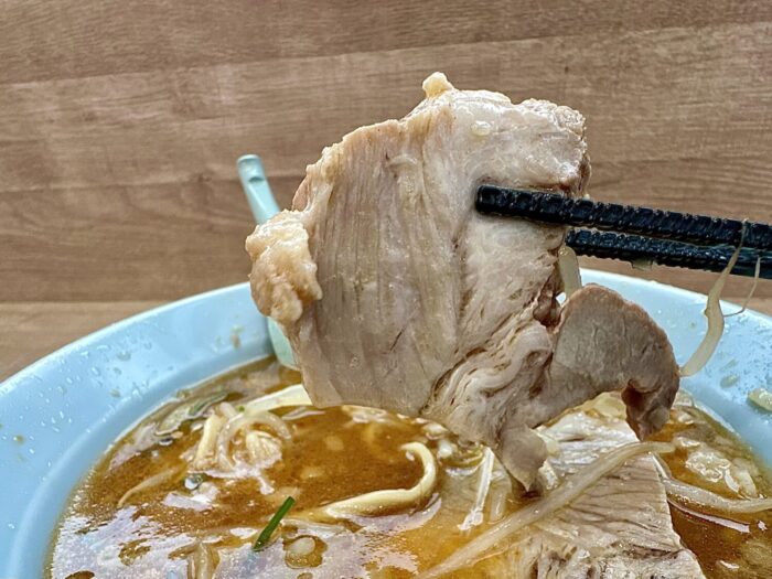 オープン当初に比べるとだいぶ厚み出た感あるブタはトロホロ感少なめのムッチリタイプ、配膳直後は全然しゃっこいから先にスープ沈めておくが吉