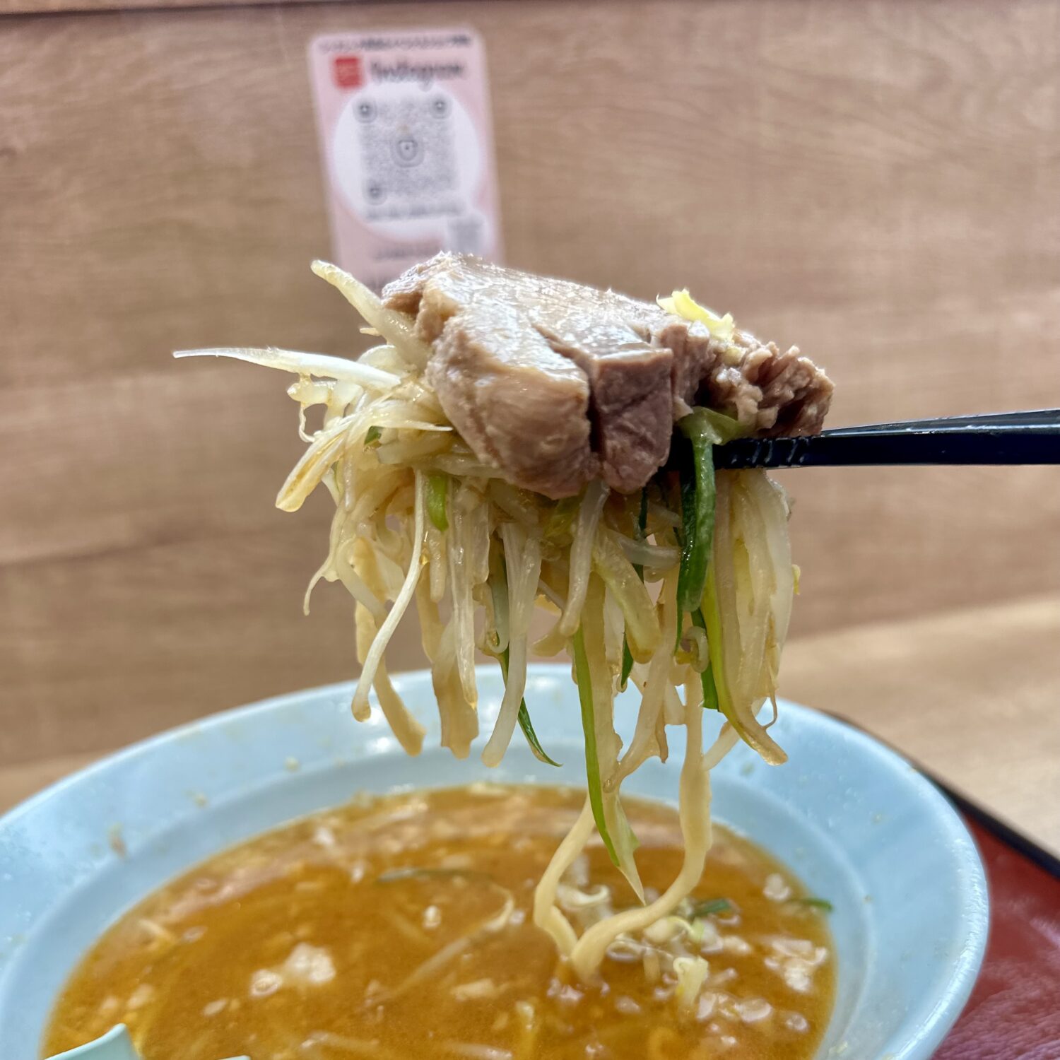 ただでさえぬるめのスープ温と引き換えに柔らかく仕上がったブタ、その歯応えの良さとしっかりめの繊維質にふとビール探しちゃう自分がほんと好き