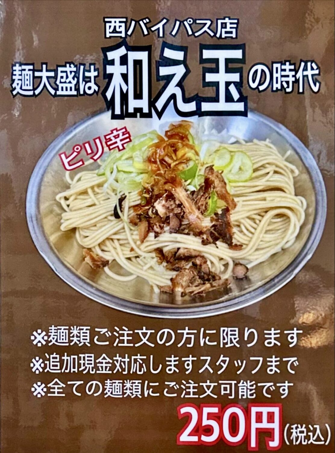 朝ラー時間帯はライス無料の西バイ長尾、ここで盛りすぎなきゃ男じゃない( ة ن ة )
