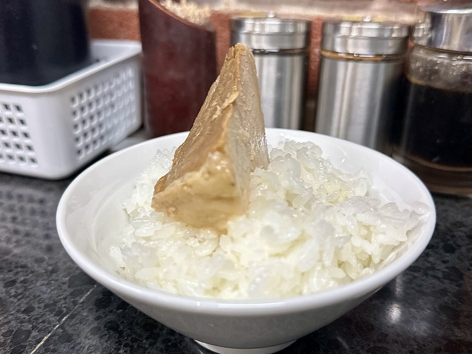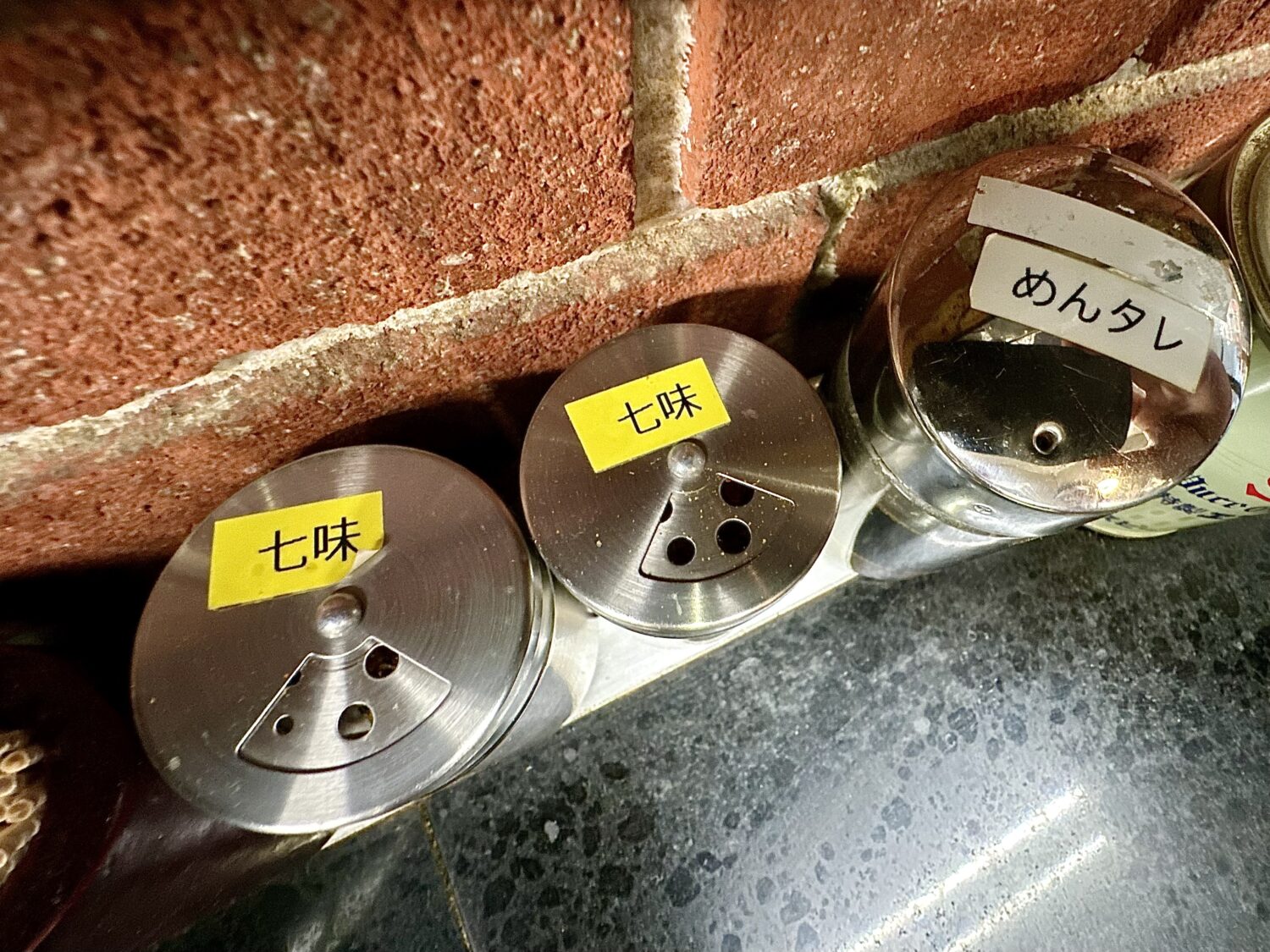 着席時の卓上調味料チェックは非常に大事で、特に朝のまだ温まってない状況では七味のダブりなんかもあったりで