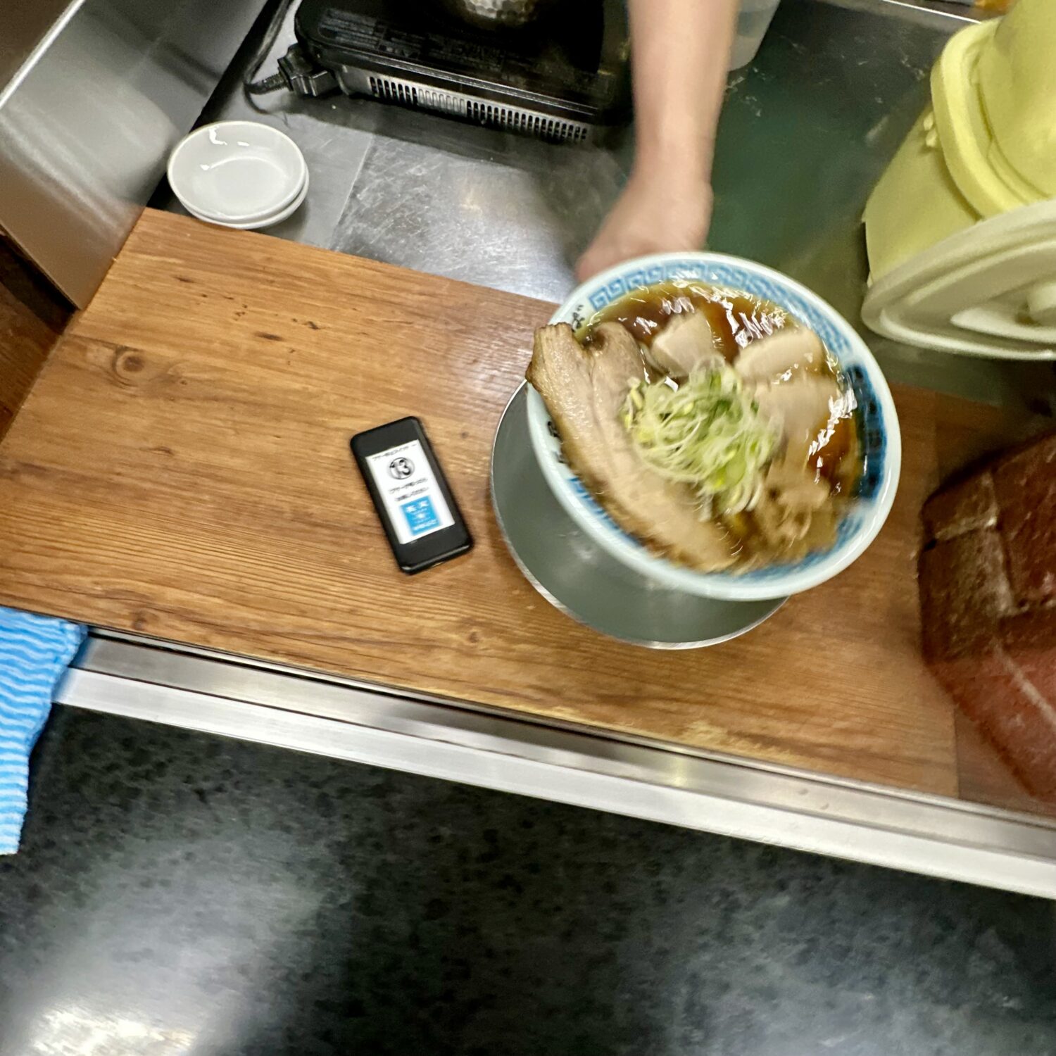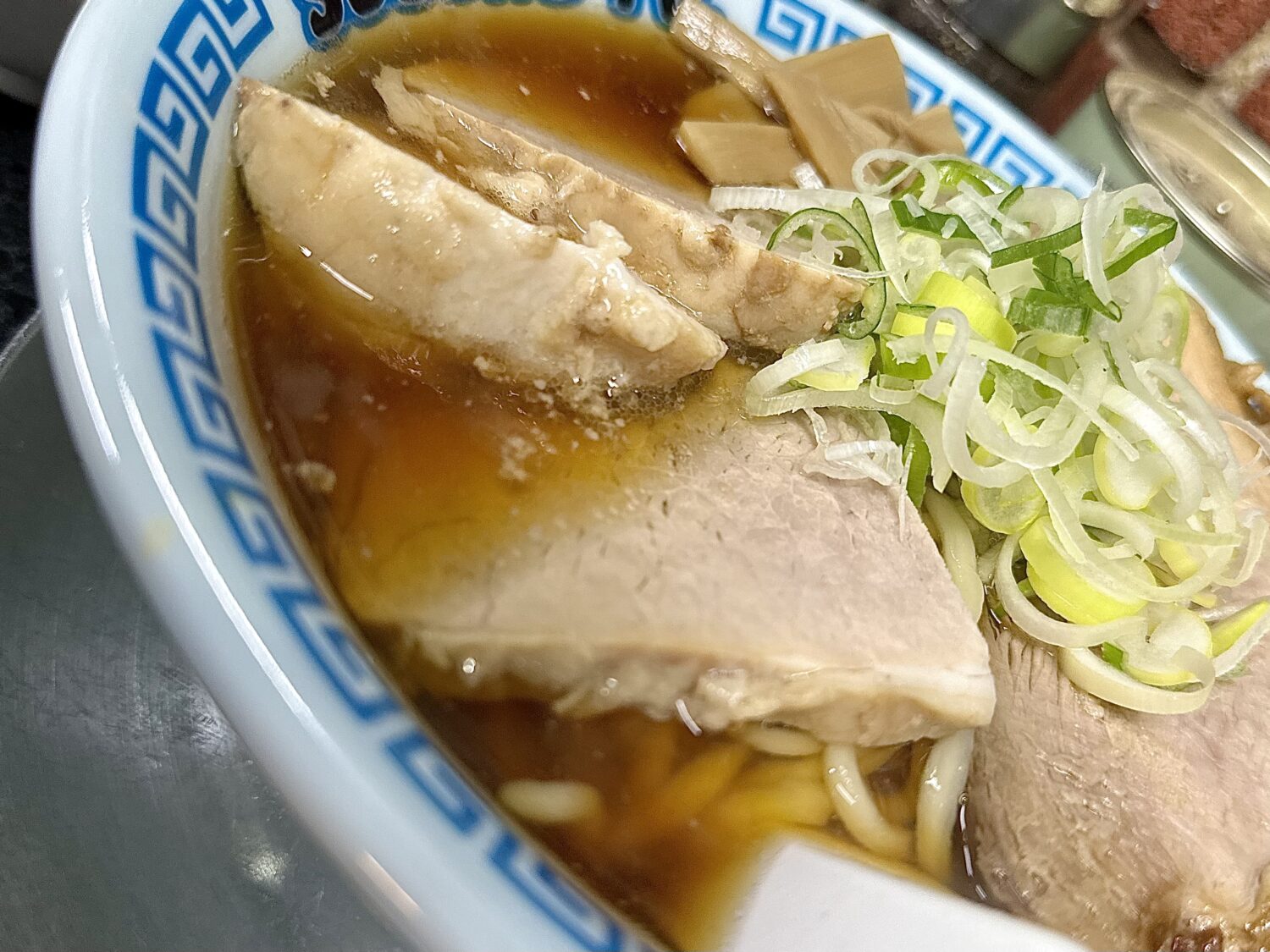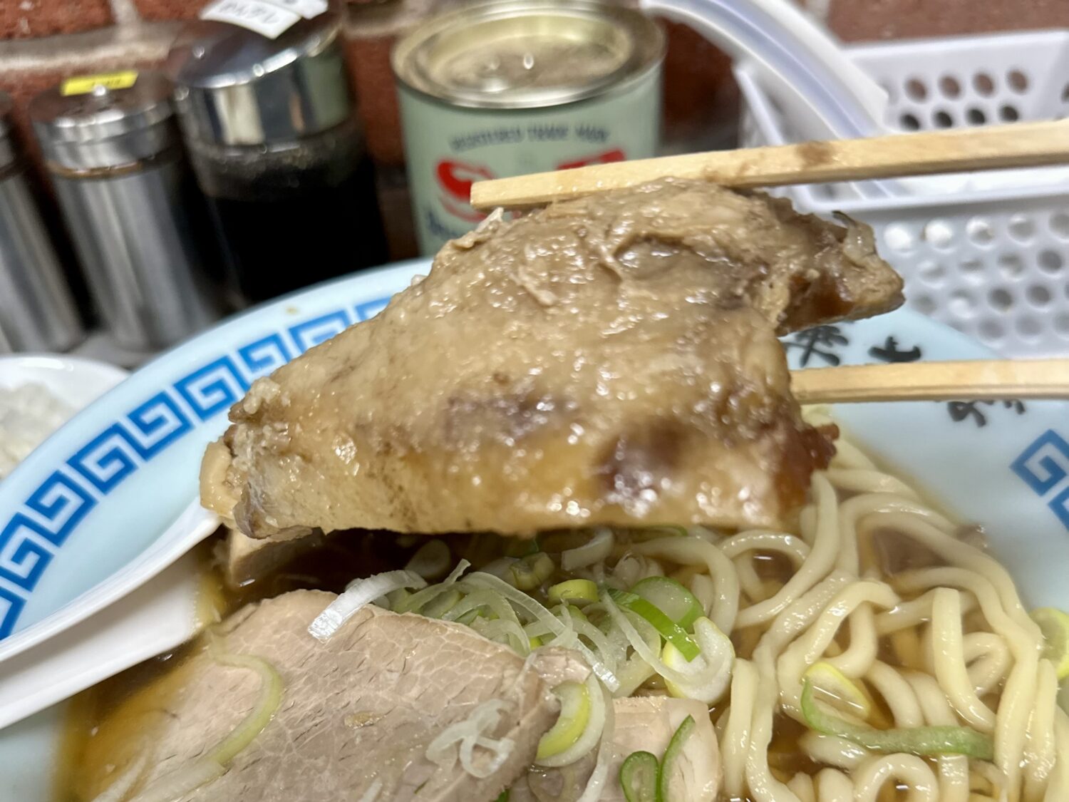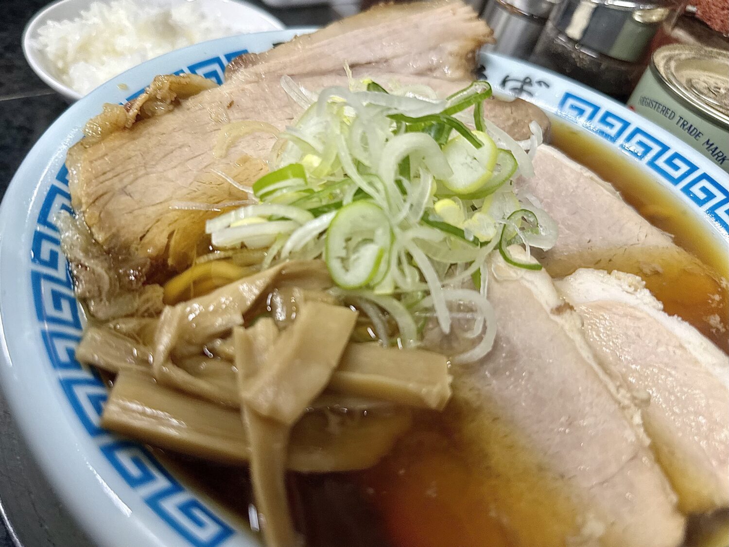 本家本流に比べるとややショッパミ抑えたスープとチャーシュー、これはこれで万人愛されキャラで高好感度、足りなきゃ卓上の追いカエシで調整可能ってのが素晴らしい。
